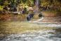 Als wir beim Frühstück sind, sehe ich, wie unser Nachbar Peter am Flussufer steht und konzentriert zur anderen Flussseite schaut…. Vielleicht ein Bär!? Schnell laufen wir rüber und schauen mal und ja, da ist ein Schwarzbär im Flussbett unterwegs gegen die Strömung. Wundervoll diese Wildtiere frei in der Natur aus sicherem Abstand zu beobachten. Besser kann der Tag nicht starten!