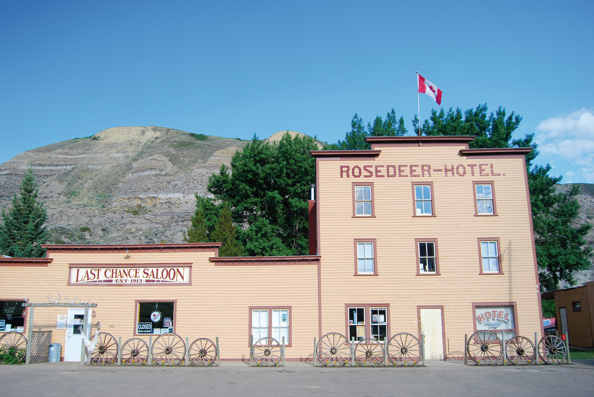 Wayne, Alberta. "Population then: 2490. Now: 27", verkündet das Schild am Ortsrand. Oder warnt es? Wayne ist ein Nest 14 Kilometer südöstlich von Drumheller im engen Rosebud River Canyon. Und offenbar ist es noch nicht ganz tot. Ob die Einschusslöcher im berühmten Last Chance Saloon noch zu sehen sind, wollten wir eigentlich fragen. Von denen hatten wir schon im Hotel in Drumheller gehört. Doch jetzt nimmt der alte Staubsauger in der Lobby des Rosedeer Hotels unsere ganze Aufmerksamkeit in Anspruch. "Ein alter Airway", flüstert die Begleitung ergriffen, "siehst Du nur noch im Museum!" Wir checken ein und kriegen ein Zimmer, in dem wir eher Clint Eastwood mit Sporen auf dem Bett sehen als uns. Die Wände mit Holz verkleidet, das Bett ein stilechtes, goldfarbenes Gitterbett. Und an der Decke eiert ein per Kettchen auszuschaltender Ventilator. Skurril aber nicht unattraktiv.