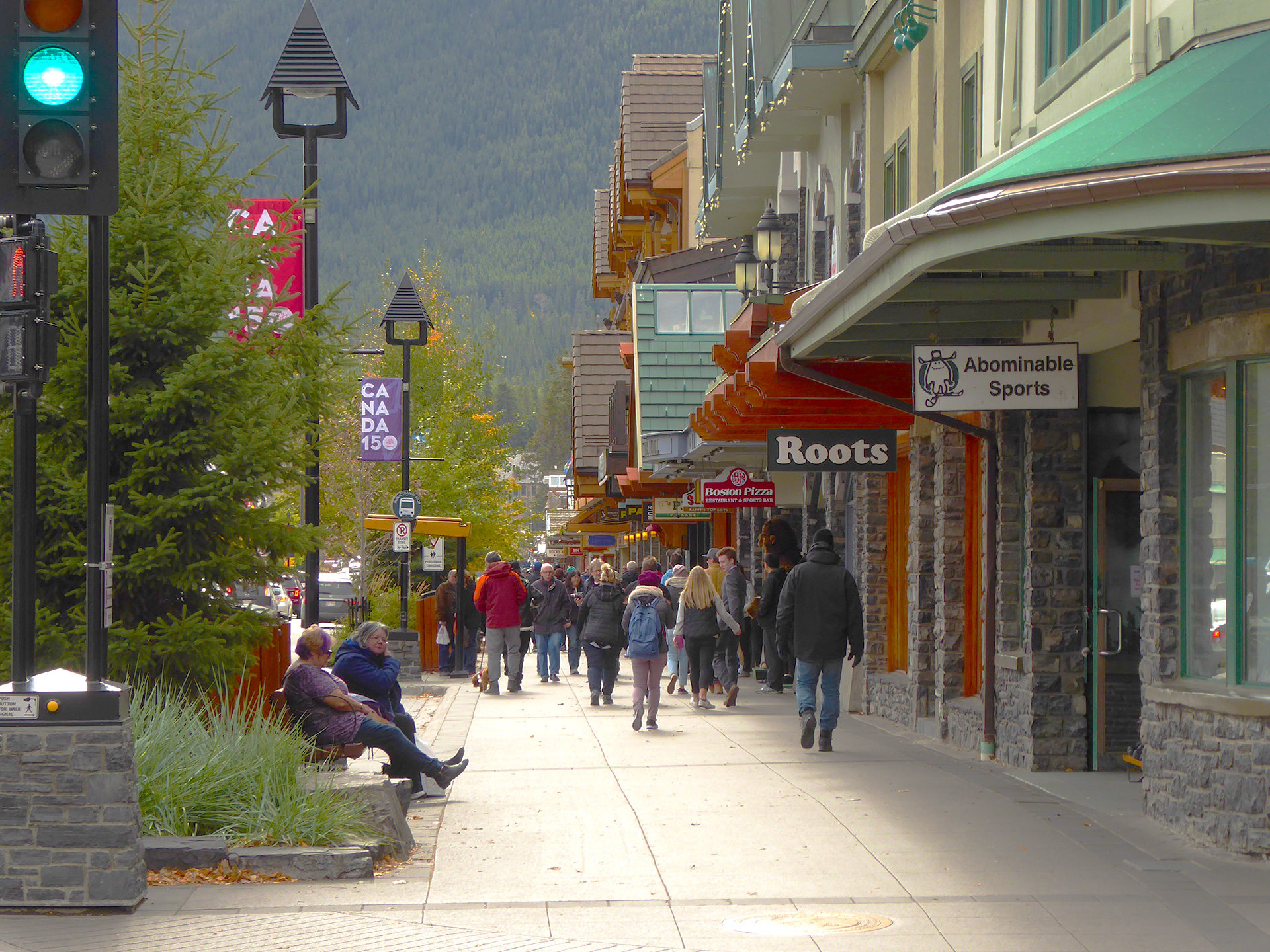 In der bezaubernden Kleinstadt Banff angekommen, bewundern wir als erstes das Fairmont Banff Springs Hotel. Auch bekannt als 'Canada's Castle in the Rockies' ist das Hotel mit 764 Zimmern und Suiten eines der größten und bekanntesten Fairmont Hotels. Schon die äußere Erscheinung des Luxushotels versetzt mich in Staunen. Für die anschließende Tour durch die belebten Straßen des Ortes ziehe ich mich warm an. Der Herbst zeigt sich mit starken Böen und kühlen Temperaturen. Mit Winterjacke und Handschuhen ausgestattet macht mir das aber wenig aus. Im Gegenteil. Mir gefällt diese Jahreszeit! Mit einem Teil der Gruppe genieße ich eine heiße Tasse Kakao und gönne mir ein leckeres Sandwich in der Wild Flour Bakery. Aufgewärmt und gestärkt für die folgende Erkundungstour ziehen wir los. Bummeln gehört definitiv zu meinen Lieblingsaktivitäten und Banff bietet dafür beste Voraussetzungen. Ebenfalls gut aufgestellt ist die Kleinstadt mitten in den Rocky Mountains in Sachen Ausgehmöglichkeiten. Die zahlreichen Restaurants, Bars und Pubs treffen mit ihren unterschiedlichen Angeboten nahezu jeden Geschmack. Im Anschluss an das leckere Abendessen im Brew Pub, checken wir Banffs Nachtleben aus. Im Wild Bill ist heute Abend Live Musik. Die Stimmung ist ausgelassen. Das gemeinsame Feiern bestätigt nochmals die Harmonie, die ich innerhalb unserer Gruppe in den letzten Tagen durchweg gespürt habe.