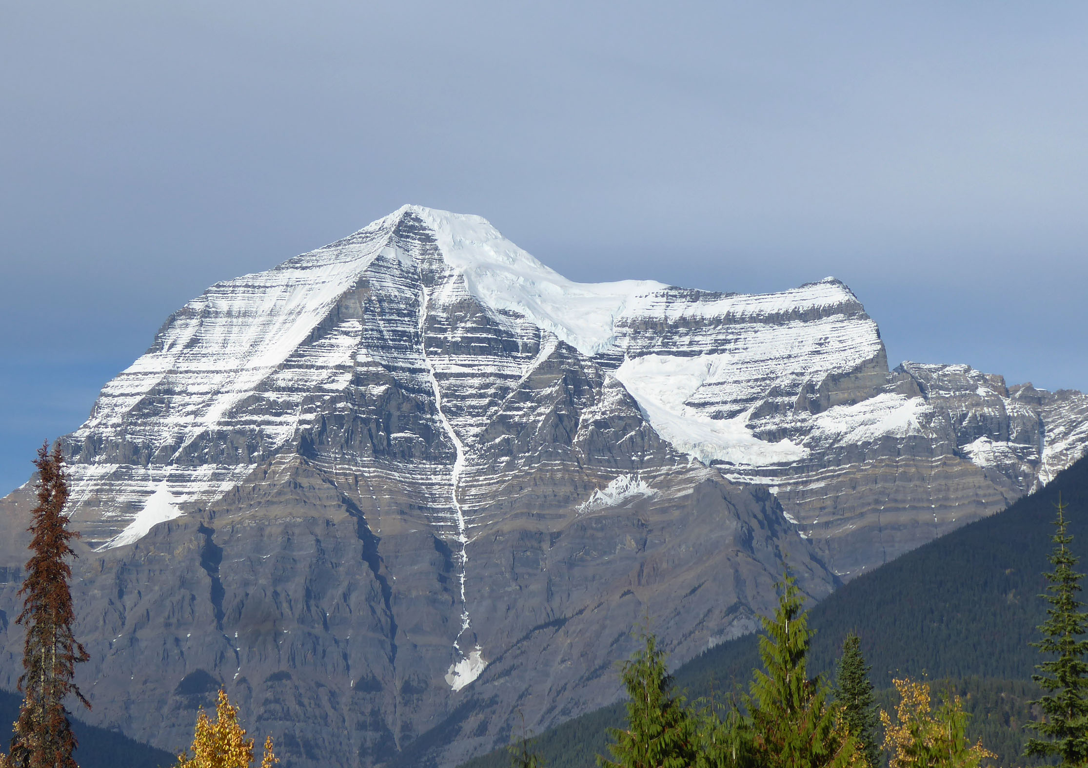 Ganz besonders gut gefallen mir die farbenfrohen Wälder, die wir auf unserem Gleisabschnitt durchfahren. Jetzt im Herbst wechseln die Blätter ihr Grün in die unterschiedlichsten Farbstufen. Die Sonnenstrahlen lassen die Farben erstrahlen und werfen eine warme und gemütliche Stimmung durch die großen Fenster zu uns in den Wagon. Ich kann gar nicht genug davon bekommen. Für einen Moment konzentriere ich mich nur auf das Farbenspiel und blende alles um mich herum aus. Pure Freude macht sich in mir breit. Dumpf nehme ich wahr, dass sich die Geräuschkulisse im Wagon erhöht. Ich öffne meine Augen und realisiere, dass wir uns ganz in der Nähe des Mount Robson befinden. Der Schaffner verlangsamt das Tempo. Mit einem gezielten Griff schnappe ich meine Kamera und stehe von meinem Platz auf. Wow, dort drüben ist er. Der höchste Berg in den Rocky Mountains! Mit seinen knapp 4.000 Metern ein beeindruckender Anblick.