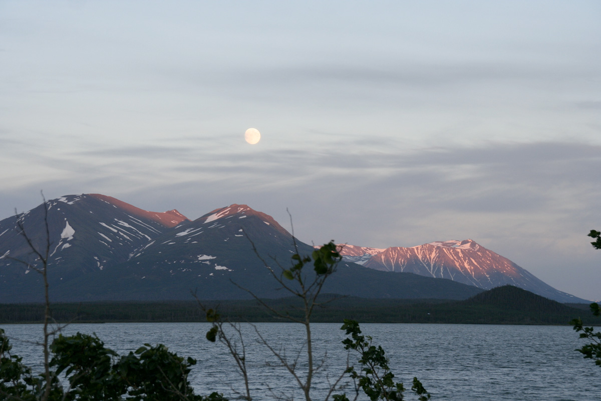 Hatte uns Sarah schon am Nachmittag mit ihrem natürlich selbstgemachtem Kuchen entzückt dürfen wir nun noch einmal ihre Kochkünste bei einem ausgezeichneten Dinner genießen. Wir beschließen den Abend bei einem Bier und Sonnenschein auf dem Sonnendeck des Haupthauses, bevor uns Gerd über die Weiten des Yukons zurück nach Whitehorse fliegt.