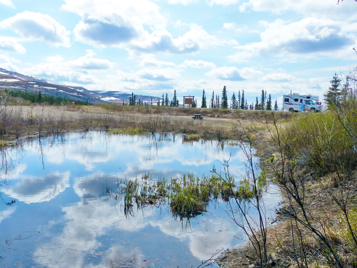 Nach einem ausgiebigen und meines Erachtens lohnenswertem Lunch Stop in der Metropole Chicken (im Winter leben hier zehn bis 15 Menschen) geht es weiter auf unserer eintägigen Etappe durch Alaska mit einem kurzen Abstecher nach Tok mit Endstation Beaver Creek, Yukon, Kanada. Der Abschnitt kurz hinter der Grenze ist normalerweise eine sehr gute Gegend für Elch-Sichtungen aber heute ist uns das Glück leider nicht hold.