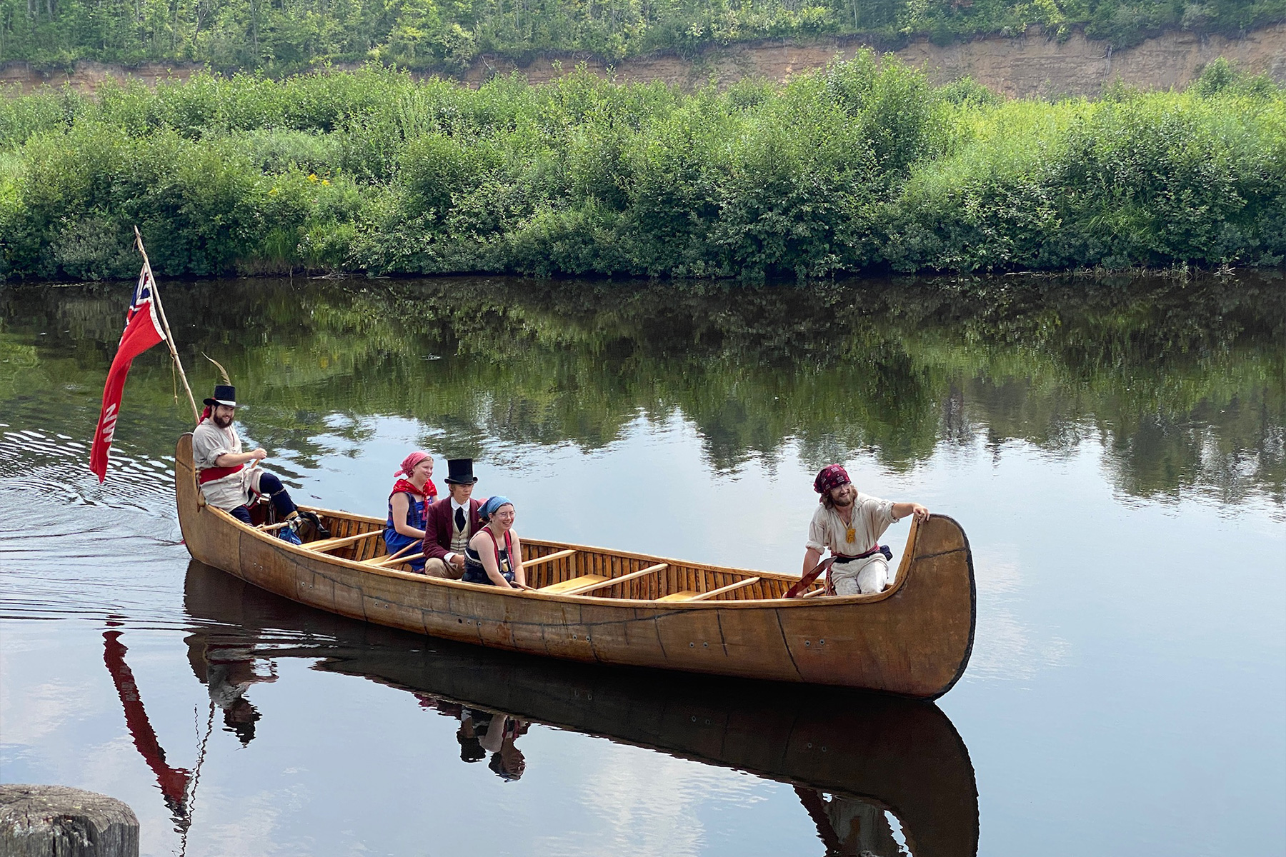 Wir schreiben das Jahr 1816: in dieser größten Niederlassung der North West Company Handelsgesellschaft treffen sich Voyageure aus West und Ost mit der indigenen Bevölkerung und handeln vor allem mit den in Europa so begehrten Pelzen. Das Fort befindet sich auf dem Territorium des Stammes der Anishinaabe, die hier seit Generationen in Harmonie mit dem umgebenden Land leben und nun ihr Wissen mit den europäischen Partnern teilen. Das Ambiente im Fort ist „very british“, vor allem die Great Hall im Hauptgebäude mit dem Zimmer des Kommandanten. Interessant ist auch die Begegnung mit dem Doktor, der seine verschiedenen Instrumente vor sich ausgebreitet hat und nichts von indigener Medizin hält. Er hat selbstverständlich in London studiert. Bei den Voyageuren waren vor allem Verletzungen der Füße zu behandeln, die Mokassins waren wohl nicht gut geeignet in dem sumpfigen Gelände und bei der Kälte. Nach Montreal waren ca. 32 Portagen zu bewältigen, nach Westen noch mehr. Um 14:30 Uhr wird täglich die Ankunft des Kommandanten in einem großen Kanu mit anschließender Ansprache an die Beschäftigten zelebriert. Die Kanus konnten gewaltige Lasten transportieren, im Fort William gab es sogar eine „Kanu-Fabrik“.
