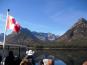 Nach der ersten Nacht im Wohnmobil fahren wir mit zwei Fahrzeugen in den Park. Erst einmal frühstücken. Danach geht es auf zum See. Eine Bootstour auf dem Waterton Lake steht auf unserem Programm. Die letzten Wolken sind weg. Herrlicher Sonnenschein. Wir nehmen sofort die Außenplätze in Beschlag. Frische Luft. Freier Blick. So macht eine Bootsfahrt richtig Spaß. Das Panorama ist beeindruckend. Tolle Stimmung. Wir haben einen super Blick auf das Prince of Wales Hotel. Die Berge spiegeln sich im ruhigen Wasser. In der Mitte des Sees überqueren wir die Grenze zwischen Kanada und den USA. Diese Tour ist einfach klasse. Kann ich vorbehaltlos empfehlen!