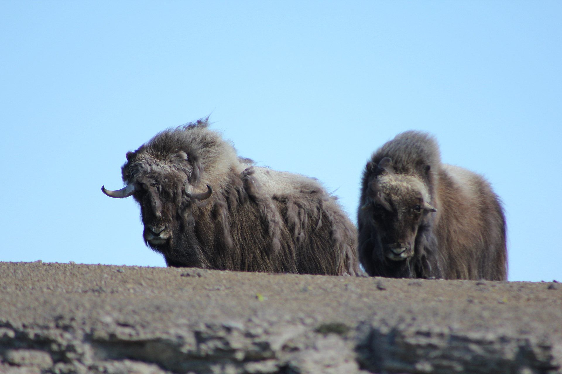 Leider hat sich das Eis in der Nordwestpassage so ungewöhnlich lange gehalten, dass die Wale noch nicht ins Inlet gelangen. Allerdings werden wir durch andere Tiersichtungen belohnt. Den Moschusochsen konnten wir zu Fuß ziemlich nahe kommen. Die Tierwelt im hohen Norden Kanadas ist wirklich beeindruckend.