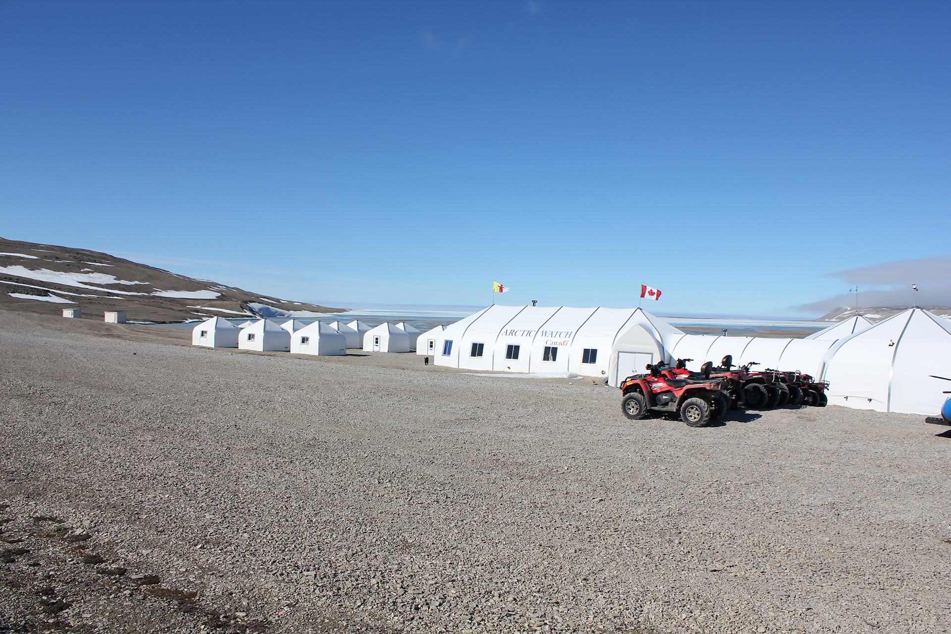 Strahlende Sonne, ordentlich Wind, 4 Grad und immer noch viel Eis im Inlet. Wir fahren an der Küste entlang, auf der Suche nach Schneefüchsen, Robben und Eisbären. Es geht ein ganzes Stück raus auf das Packeis, welches eigentlich gar nicht mehr hier sein sollte. Ich stehe schließlich direkt IN der Nordwestpassage. Die Eisbären sind noch relativ weit draussen auf dem Packeis, aber die Guides haben aus Sicherheitsgründen immer eine geladene Waffe dabei. Auf dem Rückweg versenken wir dann fast eins von den John Deere Geländefahrzeugen und ein ATV, weil der Wasserspiegel in den Bächen innerhalb von einer Stunde um ca. 30 cm gestiegen ist. Das Abenteuer kommt nicht zu kurz.