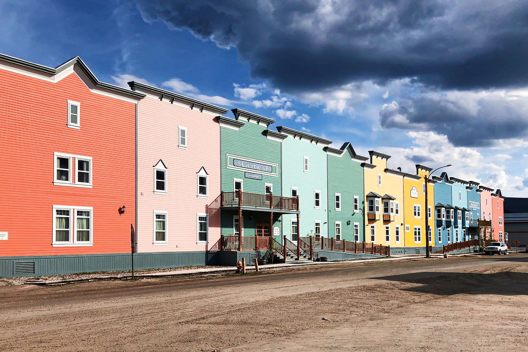 Nach fast 600 Kilometern taucht der Flughafen von Dawson City vor uns auf. Ziel erreicht! Willkommen in einer Stadt, die der Kulisse eines Goldgräberfilms in nichts nachsteht. Hier ist Geschichte lebendig - und authentisch. Es leben wirklich Menschen in diesen schiefen, aber bunten Häuschen. Sie arbeiten im Saloon mit den Schwingtüren, laufen über die staubigen Straßen und mögen ihren abendlichen Drink mit mumifiziertem Zeh.