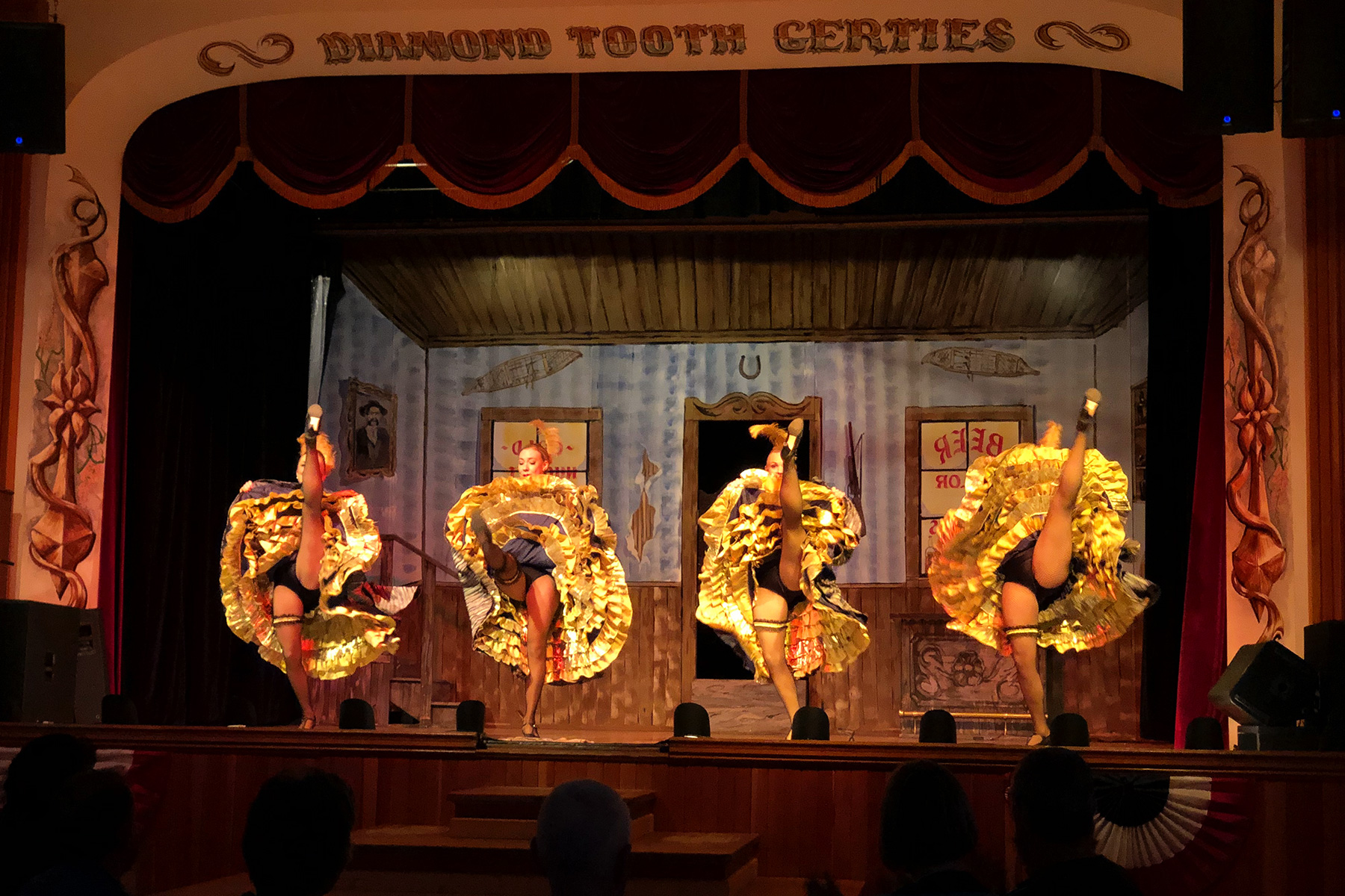 Aber jetzt schnell ins Hotel, denn heute Abend steht noch ein weiterer Höhepunkt auf dem Programm: Cancan im traditionellen "Diamond Tooth Gerties". Diamond Tooth Gertie und ihre Mädchen liefern eine tolle Show auf der Bühne, schlagen Rad und schwingen Beine und Röcke hoch in die Luft. Natürlich vordergründig eine Touristen-Attraktion, aber lustig gemacht, und irgendwie gehört es ja auch nach Dawson City! Einen leckeren Cocktail dazu und der Tag ist perfekt abgerundet.