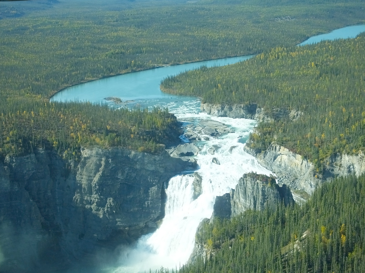 Wir starten gut vorbereitet am Morgen mit den Empfehlungen von Ray für Fort Simpson. Wetter war super und gegen Mittag waren wir in Fort Simpson, Visitor Center war geschlossen, also wir los und haben Simpson Air aufgesucht. Wir buchten gleich für den Mittag einen Flug in den Nahanni Park, Wetter Info war gut, wir haben zwar einwenig überlegt denn der Flug ist sehr teuer da wir nur 2 Personen waren. Aber werden wir das jemals wieder machen? Also kurz entschlossen, wir fliegen, Peter hat mir zu Liebe sogar seine Flugangst unterdrückt und ist mit geflogen. Wir haben dann Ted Grant den Besitzer kennengelernt als er hörte das wir von SK und Herrn Schoof kommen. Wir sagten Ihm Grüße von Rainer und Ted sagte uns das sie schon lange Freunde sind und viele Grüße an Ihn. Unser Flug startete gegen 13.30 mit dem Wasserflugzeug vom Mackenzie River, es war super, die Sicht war sehr gut, ich konnte vorn sitzen und fotografieren, es war einfach unglaublich. Wir landeten in der Nähe des Virginia Falls. Der Trail entlang des Nahanni Rivers war schon allein ein Erlebnis. Ein Zeitgefühl hatten wir nicht mehr vielleicht sind ca. 20 min gelaufen und dann standen wir oben und konnte auf diesen unglaublichen Wasserfall sehen. Man fühlt sich einfach so unendlich klein. Du weißt hier her kommt man nicht einfach mal so und wir waren 3 Menschen allein mit dieser traumhaften, unberührten Natur. Wir mußten dann wieder weiter und machten einen 2. Stopp bei der Lodge von Ted am Little Doctor Lake. 2 Gäste waren dort, wir konnten uns die Unterkunfte ansehen , es gibt kein Strom oder Wasser, es ist wie im Paradies und der Blick auf den See, den wird man nicht vergessen. Dann ging der Flug zurück, Peter mußte sich noch mal anstrengen und fast am Ende unseres Fluges steuert ich das Flugzeug und unser junger Pilot hatte Freude an Peters ängstlichen Blicken, ich war stolz und froh als ich das Steuer wieder übergeben konnte. Gegen 19 Uhr waren wir von unserem unglaublichen Ausflug zurück. Wir haben es nicht bereut, es wir unvergesslich bleiben. Wir fuhren auf den Campground und haben den Abend ausklingen lassen.