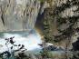Hier gibt es eine Rangerstation von Parks Canada und einer der beiden Diensthabenden Ranger erwartet uns schon. Dustin aus Fort Simpson. Volle 10 Tage ist er immer hier in der Wildnis, bevor er dann wieder einige Tage frei hat. Auf dem Notice Board direkt zu Beginn lesen wir, dass vor einer knappen Stunde ein großer männlicher Grizzly im Campground, durch den wir zu den Fällen wandern müssen, gesichtet wurde. Konsequent weigert sich meine Frau dann auch zunächst, mit den Kindern diesen Weg zu beschreiten. Es bedarf all meiner Überredungskunst mit der Erinnerung daran, wie oft wir es auf unseren Kanadatrips schon mit Bären zu tun hatten (auch mit Grizzlies - einmal sogar mit vier Grizzlies zugleich, aber das ist eine andere Geschichte), und Dustins Hinweis darauf, dass er sowohl Bearspray (Pfefferspray) als auch einen Bearbanger (eine Art Schussimitat) dabei hat, bis wir uns dann schließlich doch in Richtung der Virginia Falls in Bewegung setzen. Ein interessanter Soaziergang - fast komplett über Stege durch den Wald. Also auch recht bequem. Und natürlich keine Spur von dem Grizzly.... Der Campground fasziniert micht. Er liegt echt schön mitten im Wald. Überall sind großzügige Plattformen für die Zelte gebaut. Ich bekomme richtig Lust, hier selbst ein Zelt aufzuschlagen. Dann weiter zum Kopf der Fälle. Wenn man hier so steht, kommt man sich klein vor. Einfach nur beeindruckend. Ich weiß auch nicht, was ich sonst groß schreiben soll. Es ist nicht zu beschreiben. Man muss es gesehen haben.