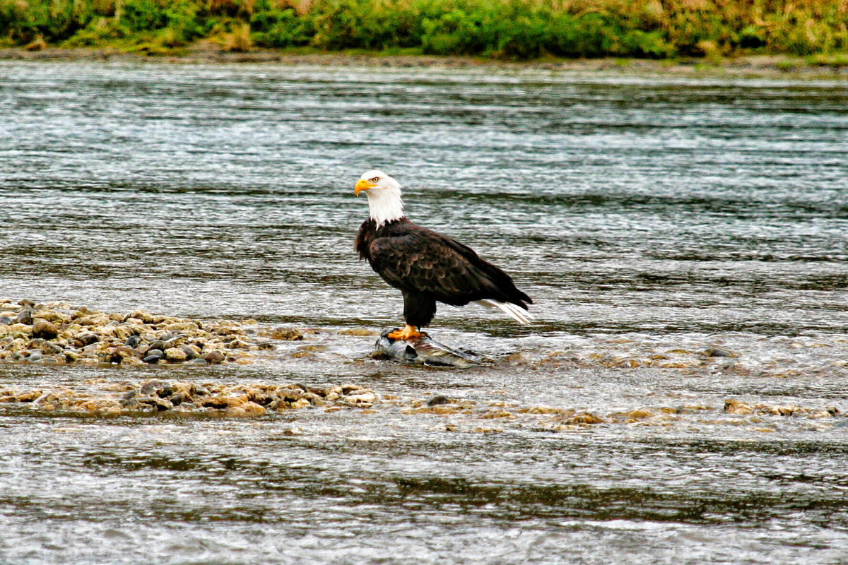Heute morgen verzichten wir auf das Frühstück im Rosedale (der Service hatte uns hier gestern nicht so gut gefallen) und wir fahren früh los nach Langley. Frühstück mit leckerem Kaffee bei Starbucks und dann nur über die Straße zu Traveland RV. Wir steigen wieder in unser Mobil und Kamnels übernehmen ihres - und los geht's ins Fraser Valley zum Harrison River. Auch dort werden wir von herrlichem Wetter empfangen. Der Wasserstand des Flusses ist hoch, aber wir riskieren einen ersten Angrlausflug zur nahegelegenen Eisenbahnbrücke - leider erfolglos, aber trotzdem spannend für die Kinder. Anschließend brauchen wir alle eine Abkühlung und springen in den Fluss. Aber nur ganz kurz, denn das Wasser ist eiskalt...