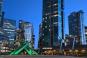 Wir lassen das Auto die nächsten beiden Tage in der Tiefgarage stehen. Unser vorletzter Tag ist angebrochen. Wir laufen kreuz und quer durch Vancouver Downtown, suchen Bekanntes, entdecken Neues. Statt eines Rundfluges fahren wir im Harbor Center ganz hinauf zum Vancouver Lookout und genießen bei klarem Wetter eine Rundumsicht auf die Stadt mit tollen Erklärungen, was man da so alles sieht. Allerdings habe ich beim Hochfahren die Augen zugemacht, denn der Aufzug ist aus Glas und außen am 169 m hohen Gebäude angebracht. Die rauchende Steam Clock in Gas Town ist immer wieder ein kleines Erlebnis und wird liebvoll instandgehalten. Wir sind auf das Vancouver House aufmerksam geworden und laufen die ganze Burrard Street hinunter, um es zu sehen. Je nachdem, in welchem Winkel man es sieht, wirkt es, als würde es auf einer Säule, einer Wohnung stehen, während es nach oben viel breiter wird. Eine geniale optische Täuschung und witzige Architektur. Natürlich flanieren wir auch über den Canada Place, auch heute liegt wieder ein großes Schiff vor Anker. Hier ist Vieles umgestaltet worden. Zum Beispiel wehten früher die Fahnen der Provinzen vor dem Canada Place, heute hat man den Boden neu verlegt und dabei die Provinzen und ihre bekannten Städte als Platten verlegt, so dass man beim Begehen der Plattform einmal durch ganz Kanada spaziert. Ober der oberen Aussichtsplatte wurde die Hymne Kanadas in Englisch und Französisch verlegt. Im Lot 49 gönnen wir uns eine Pause. Kleinkünstler spielen hier Musik, ein Café bietet Sitzgelegenheiten an, der Platz zwischen den Bürogebäuden ist begrünt und mit Bäumen bewachsen, eine kleine Oase inmitten der Betonwüste. Vancouver ist eine Stadt, die mit der Zeit geht, modern, hip, sie wächst, aber überall sieht man solch kleine Oasen und auch alte, kleine Backsteingebäude aus dem vorletzten Jahrhundert stehen neben gläsernen, hoch in den Himmel schießenden Wolkenkratzern. Am frühen Abend machen wir tatsächlich schon ein paar Einkäufe für die Abreise, ein paar Mitbringsel für zu Hause, als Erinnerung für uns. Es ist so unwirklich. Wo sind die drei Wochen nur geblieben? Um von dieser Frage abzulenken, gehen wir mit vollen Einkaufstüten in die Spaghetti Factory in Gas Town. Die haben dort nicht nur fantastisches italienisches Essen, sondern auch ein besonderes Ambiente. Innen steht ein Straßenbahnwaggon, für Gäste hergerichtet und das sanfte Licht kommt aus unzähligen Tiffanylampen. Ansonsten ist es sehr gemütlich, rustikal und ein bißchen antik eingerichtet.