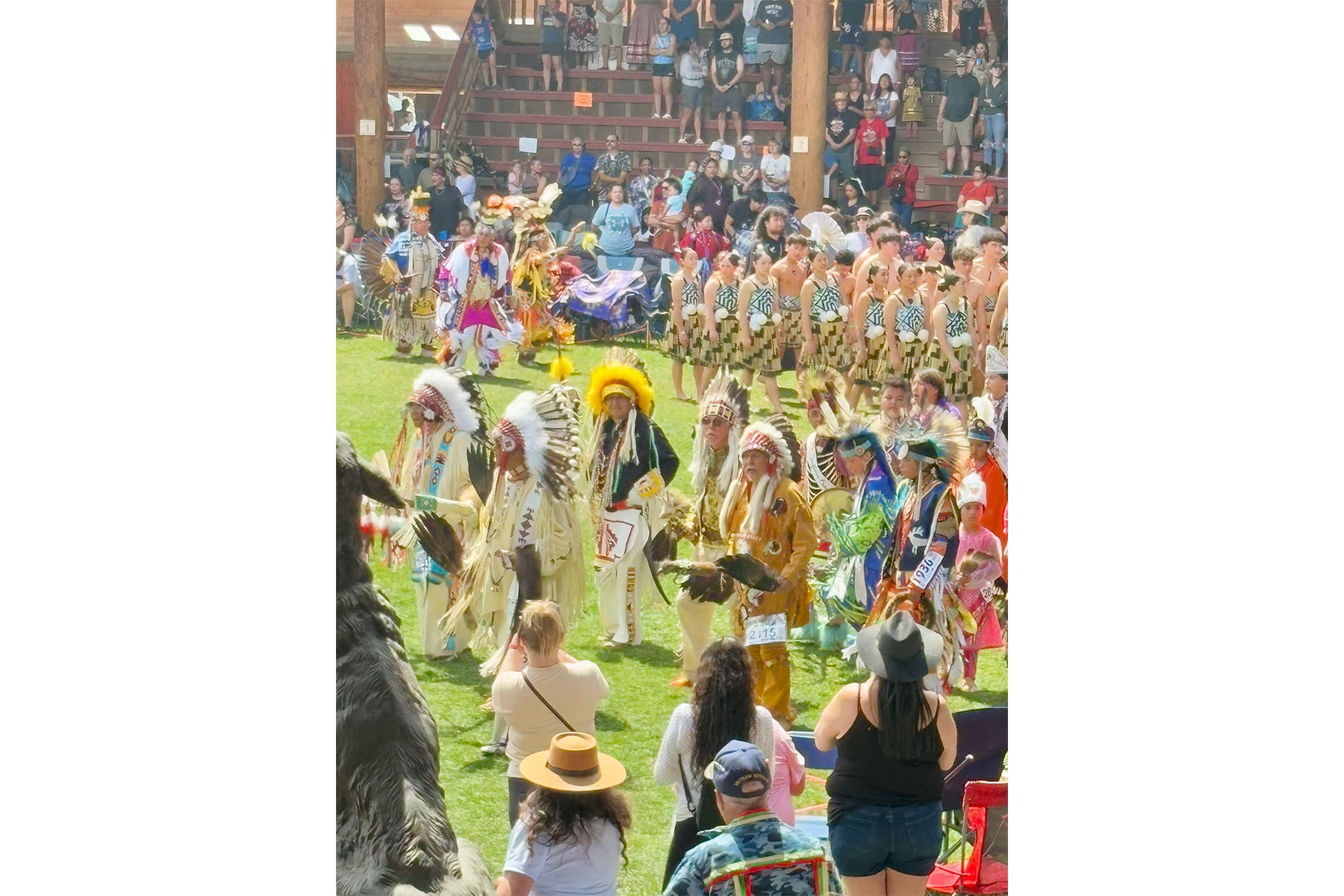 Manchmal wird aus wenig viel mehr. Eigentlich fahren wir heute nur bis Whistler, um dort zu übernachten, bevor es dann morgen auf die Fähre nach Vancouver Island geht. Doch in Kamloops gibt es das Secwepemc Museum and Heritage Park, welches wir uns noch auf dem Weg anschauen wollten. Nur kommen wir gar nicht bis dahin. Die Straßen sind voll, Autos von überall her, Völkerwanderungen am Straßenrand. Unsicher fahren wir weiter, lassen uns zu einem Parkplatz leiten. Von einem Powwow ist die Rede. Wir folgen den Massen wie eine Ameisenstraße. Das Museum ist geschlossen, dafür entdecken wir Zeltplätze, Campingfahrzeuge und alles führt zum Kamloops Powwow Ground, einem Stadion. Wir lassen uns drauf ein und platzen mitten in eine jährliche Großveranstaltung hinein, bei der sich die nordamerikanischen indigenen Volksgruppen treffen zum Feiern, Singen und Zusammenkommen mit traditionellen Aufführungen und Kunsthandwerksständen. Das Stadion füllt sich und nach einem ersten Rundgang durch die Stände suchen wir uns einen Platz. Es ist ein buntes, lautes und fröhliches Spektakel. Alle Regionen werden mit Trommeln und Gesang vorgestellt und schließlich ziehen die Gruppen in einem langen Marsch mit Musik und Tanz ins Stadion ein. Die Reihe scheint kein Ende zu nehmen. Farbenfroh und total unterschiedlich ist die traditionelle Kleidung und der Federschmuck. Sehr beeindruckend, auch wie fröhlich und gemeinsam hier gefeiert wird, indigen oder nicht. Besser als jeder Museumsbesuch. Glück muss man haben und sich drauf einlassen wollen.