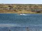 Nachmittags kehren wir zurück zur Ranch - geschafft, aber glücklich! Nachdem die Pferde versorgt sind, steigt George auf seinen Jetski und hängt einen überdimensionalen Schwimmreifen an das Gefährt. So eine schöne Abkühlung im Lake Diefenbaker lasse ich mir nicht entgehen! Schnell hüpfe ich in meine Badesachen und schnappe mir ein Handtuch. Ich setze mich in den Reifen und suche mir zwei Griffe zum Festhalten. Die wilde Fahrt kann losgehen! George gibt von vorn herein Vollgas und zieht den Reifen von rechts nach links über das Wasser. Ich kann nicht aufhören zu lachen. Wir sind so schnell, dass ich das Gefühl habe, wir heben gleich ab. Meine (Freuden-)Schreie hört man wahrscheinlich bis zum Steg. Was für ein Spaß und eine fantastische Erfrischung noch dazu.