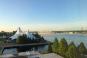 Morgens darauf werde ich schon wieder vor sechs wach – aber diesmal selbstverschuldet. Da hab ich doch glatt am Abend vergessen die Vorhänge zuzuziehen. Die Sonne strahlt also in mein Zimmer. Da ist es auch viel zu schade, im Bett liegenzubleiben. Also Laufschuhe an und raus an die Waterfront. Blauer Himmel, 9°C und windstill – herrlich. Und es ist nichts los, weder auf dem Fußweg am Wasser noch auf den Straßen. So etwas wie Berufsverkehr kennt man hier scheinbar nicht.