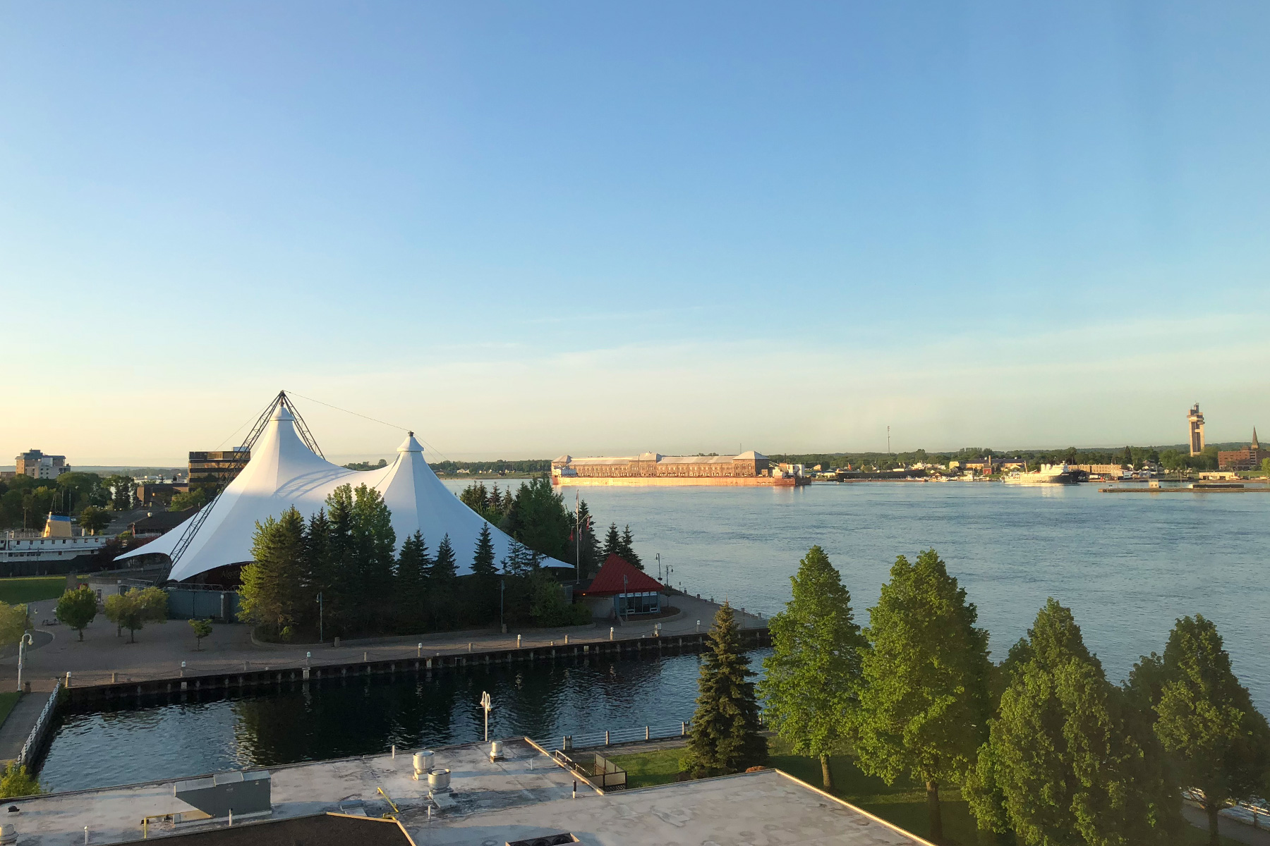 Am Nachmittag kommen wir in the Sault an und checken im Delta Sault Ste Marie Waterfront ein. Die Lage ist super. Aus meinem Zimmer schaue direkt auf den St. Mary´s River, der Lake Superior mit dem Lake Huron verbindet. Außerdem kann ich von hier oben sehen, dass die Hotelbar eine Terrasse an der Wasserseite. Wenn das kein Zeichen ist! Für ein Bier mit Aussicht ist noch genug Zeit vorm Abendessen. Mit dem Dinner sollte der Abend dann eigentlich gemütlich ausklingen. Aber wir bekommen noch den Tipp, dass hier ab morgen das WTF-Comedy-Festival stattfindet und dass einige der Comedians heute schon ein kostenloses Vorprogramm im Casino spielen. Also nichts wie hin. Das Casino ist gerade mal 10 Minuten Fußweg vom Hotel entfernt. Ganz lustig, in der hinteren Ecke steht eine improvisierte Bühne mit einigen Tischen und Stühlen davor spielen in Kanada durchaus bekannte Comedians ihr Kurzprogramm, während fünf Meter daneben Leute an den Spielautomaten zocken. Gegen elf Uhr ist die Show zu Ende und mein Abend damit auch, denn in dem Spielcasino hält mich danach wirklich nichts mehr.