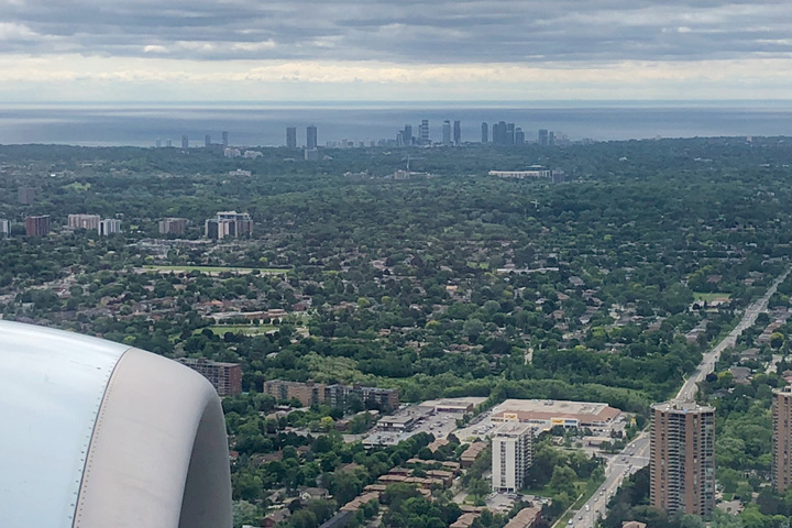 Und dann geht es endlich los. Um 4 Uhr in der Nacht klingelt der Wecker. Sogar mein Hund weigert sich, aufzustehen und würdigt mich keines Blickes. Um kurz nach 6 geht mein Flieger von Münster nach Frankfurt. Also alles ganz entspannt. In Münster geht man vom Parkhaus zum Check-in keine fünf Minuten und es reicht, wenn man eine gute halbe Stunde vor Abflug dort ist. Von Frankfurt geht es mit Air Canada weiter nach Toronto. Der Flieger ist pünktlich, das Personal ist freundlich. Was will man mehr. So kenne ich das von Air Canada. Es ist etwa 12 Uhr und es landen gerade Maschinen aus allen Teilen der Welt. Man hat das Gefühl, der Flughafen platzt aus allen Nähten. Trotzdem geht die Einreise, wahrscheinlich auch wegen der neuen Terminal-Kioske, recht zügig. Da ich noch einen Weiterflug mit Air Canada habe, muss ich mein Gepäck nicht erst in Empfang nehmen und dann wieder aufgeben, sondern es wird direkt durchgecheckt. Eine extreme Erleichterung. Das war vor zwei Jahren noch anders.