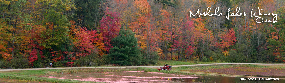 Je näher wir dem Algonquin Park kommen, desto intensiver werden die Farben. Wir fahren zuerst durch das Farmland nordwestlich von Toronto, das nach und nach Platz macht für das so genannte "Cottage County", ein Gebiet aus unzähligen kleinen und großen Seen, wo viele Bewohner Torontos ihre Wochenendhütten haben. Auch hier finden sich immer wieder Winzereien und wir legen einen spontanen Stopp ein: Auf einer der Winzereien findet gerade ein Erntedankfest statt. Es bieten zahlreiche lokale Händler Spezialitäten, Handwerk und natürlich Wein an und man fühlt sich kaum mehr wie ein Tourist in der familiären Atmopshäre. Später werden wir von unserer Gastgeberin für die Nacht abgeholt, die wir am Rice Lake im idyllischen Elmhirsts's Resort verbringen. Das Elmhirst's ist ein familiengeführtes Resort am Ufer des Rice Lake und besteht aus insgesamt 30 Cottages am Seeufer sowie dem Haupthaus mit Spabereich und Pool. Nach einer Tour über das Gelände und die Farm bleibt vor dem Abendessen gerade noch Zeit für eine kurze Fahrt mit dem Kanu auf dem See, während die Sonne langsam untergeht. Wirklich eine wunderbare Erfahrung.