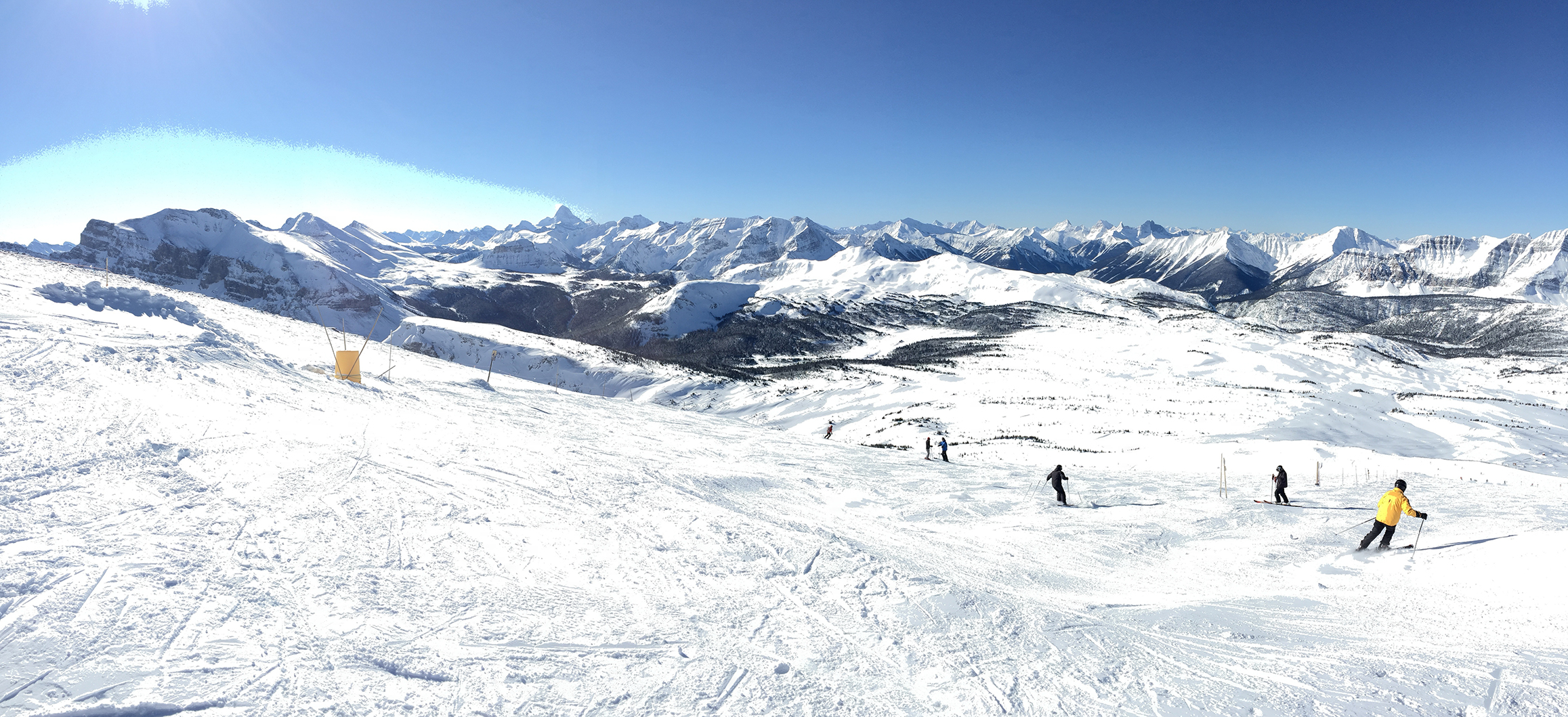 Was machst du, wenn du hier oben vor lauter Schnee nicht die Hand vor Augen siehst? Ben Rankin zögert keine Sekunde: "Wenn man 27 Jahre hier hoch und runter gefahren ist, erkennt man die Piste daran, wie sie sich anfühlt!" Das ist eine erstaunliche Aussage, schaut man sich die Größe von Bens Arbeitsplatz etwas näher an. Das Sunshine Ski Resort nahe Banff ist 1350 Hektar groß und hat über 100 Abfahrten mit einer Gesamtlänge von rund 200 Kilometern. Mit Höhen zwischen 2200 und 2700 Metern ist Sunshine nicht nur Albertas höchstes Skigebiet, sondern auch extrem schneereich. Gut zehn Meter der weißen Pracht werden hier pro Saison gemessen. Wie Ben also im Schneetreiben auf einer der 200 Pistenkilometer zuverlässig seinen Standort bestimmen kann, ist mir bestenfalls schleierhaft.