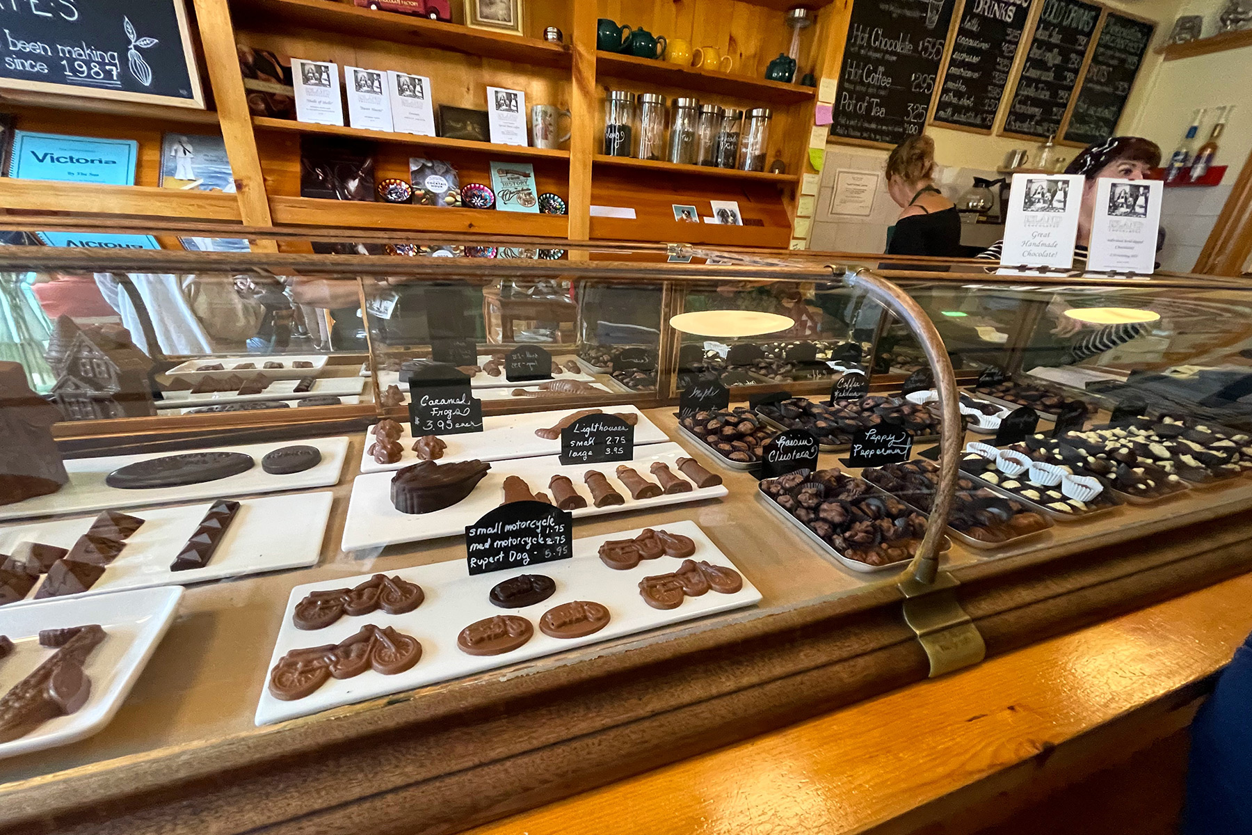 Gleich nach dem Frühstück geht es nach Victoria-by-the-Sea. Ein typisches, niedliches Fischer-Dörfchen an der südlichen Küste von PEI. Von Charlottetown sind es nur knapp 35km bis hierher. Perfekt also für einen Tagesausflug! Wir schlendern durch das Örtchen und besuchen die verschiedenen kleinen Shops. Hier gibt es viele kleine Art-Galleries, Shops mit handgefertigten Mitbringseln und „Island Chocolates“. Hier dürfen wir uns sogar durch die verschiedenen Schokoladen, welche hier in Victoria hergestellt wird! Wir schauen uns noch kurz den kleinen Leuchtturm von Victoria an und genießen das ruhige kleine Dörfchen! Unsere Guide Donalda erzählt, dass es hier in den Sommermonaten auch mal ganz schön busy zugehen kann, das Dörfchen dann aber quasi erst richtig aufblüht!