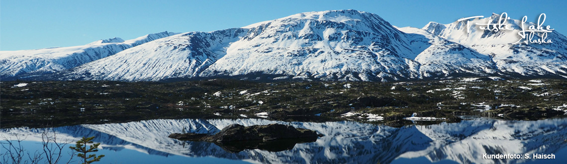 Obwohl wir eigentlich nach Skagway unterwegs waren, machten wir noch einmal einen Umweg und fuhren zum White Mountain, denn wir wollten gerne Schneeziegen sehen. Und nachdem diese im Herbst immer furchtbar weit oben ansässig sind, machten wir uns Hoffnung, dass sie im Frühjahr weiter unten ihre Lämmer zur Welt bringen. Also wanderten wir los und waren voll freudiger Erwartung. Diese wurde auch nicht enttäuscht, denn wir sahen tatsächlich welche dieser interessanten Kletterkünstler und sie waren auch deutlich weiter unten als im Herbst. Leider immer noch zu weit oben für uns und somit nur suboptimal zu sehen. Dafür konnten wir von oben eine herrliche Aussicht über den Little Atlin Lake genießen, der im Sonnenschein glänzte.