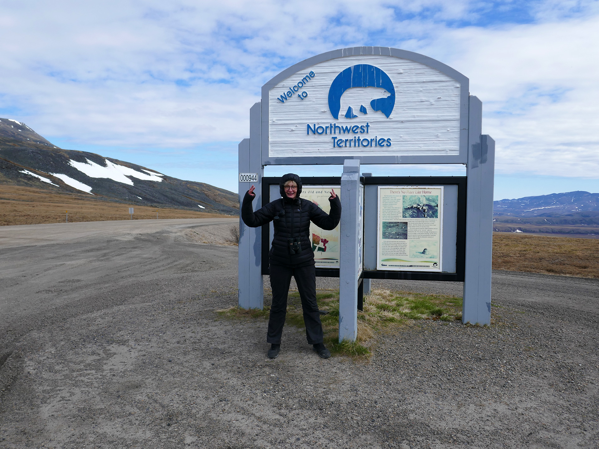 Am Morgen haben wir uns an der Rezeption vom Hotel erkundigt, ob die Fähren geöffnet seien, leider nein. Zum Frühstück fuhren wir die paar Kilometer bis zum Arctic Circle. Puh, ein eisiger Wind wehte. Schnell wieder in den Camper und weiter Richtung Border Yukon/NWT. Dort angekommen, zogen wir uns erst einmal warm an, denn es waren null Grad und sehr windig. Es war so ein beißender Wind, man konnte kaum ein Foto machen, ohne das man das Gefühl hatte, die Finger fallen ab.