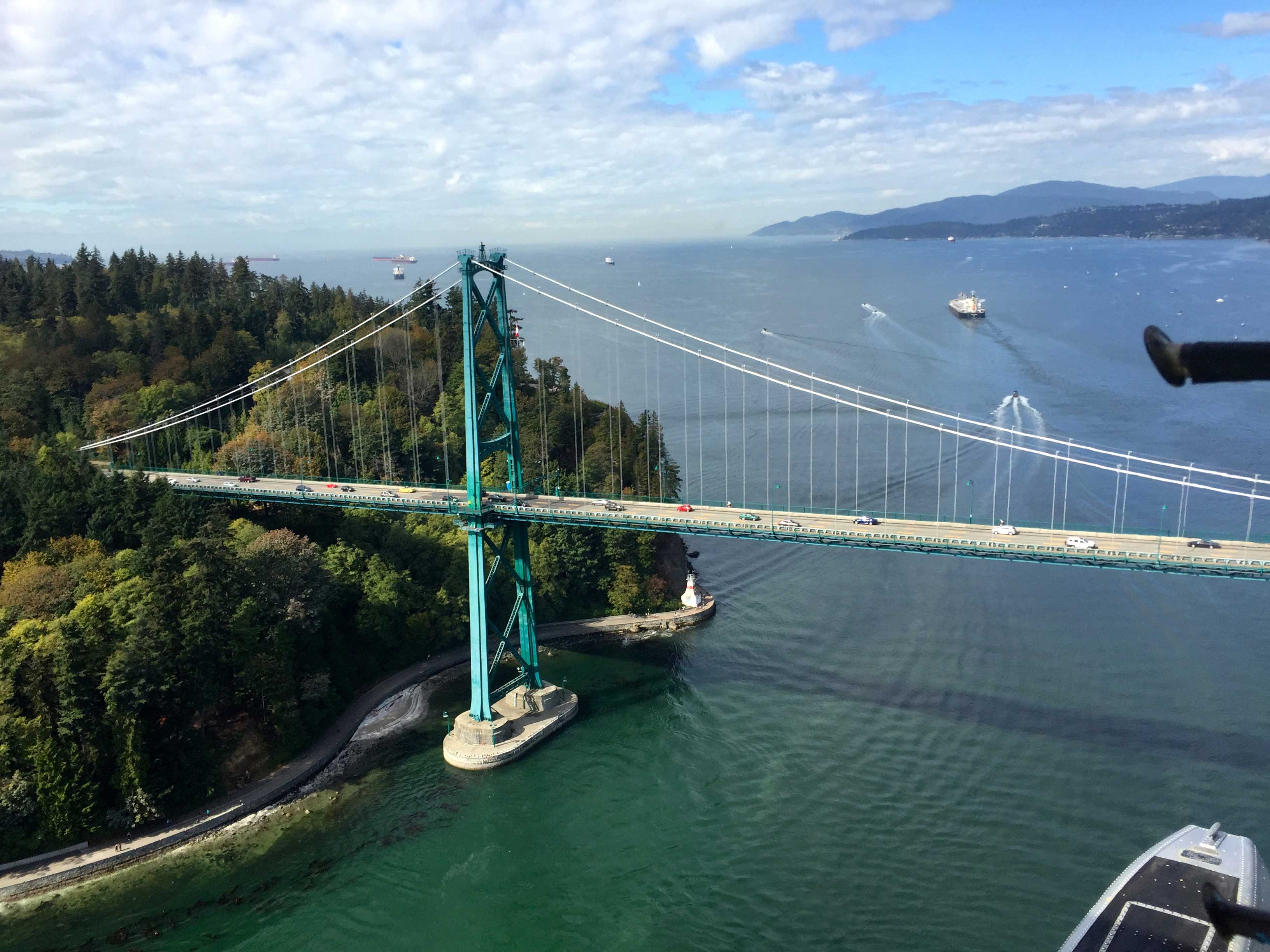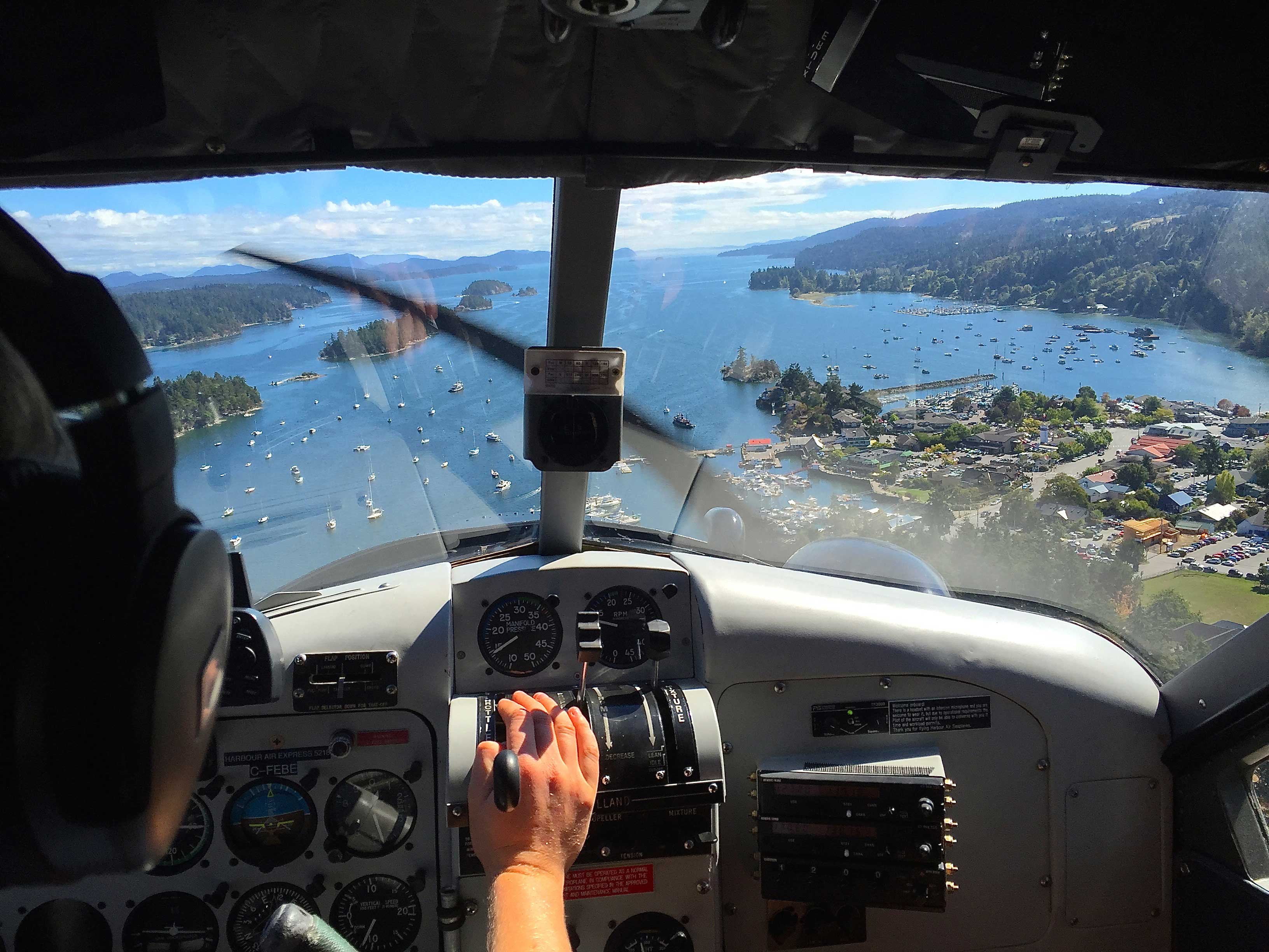Die Twin Otter nimmt Fahrt auf, hebt irgendwann kaum merklich ab und wuchtet sich dann in einer steilen Kurve in die Lüfte. Was dann kommt, ist einfach eine Wucht! Vor allem von einem Fensterplatz aus! Ich fliege über die Lion’s Gate Bridge und über offenes Meer den Gulf Islands entgegen. Links gleiten der Stanley Park und die Skyline von Downtown vorbei, rechts die Coast Mountains. Bei einer Geschwindigkeit von 140 bis 190 km/h und einer Höhe unter 3000 Metern bleibt reichlich Zeit und Gelegenheit zum Schauen und Genießen. Die 20 Minuten nach Ganges auf Salt Springs Island bieten tolle Blicke auf Schiffe, Inseln und Eilande im Minutentakt!