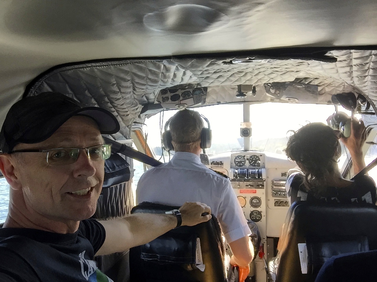 Das Prozedere geht so: Man geht zum Schalter und erhält sein Ticket. Wenig später ist das Boarding angesagt: Man spaziert zum Dock, drückt dem Piloten sein Gepäck in die Hand – man darf es nämlich nicht mit sich führen – und klettert oder kriecht – ja, es ist eng – auf seinen Platz. Mit etwas Glück erwischt man auch den Platz neben dem Piloten. Dieser sagt ein paar Worte zur Sicherheit, denen keiner zuhört, dann steuert er die Twin Otter hinaus in das Hafenwasser. Und dann geht's los.