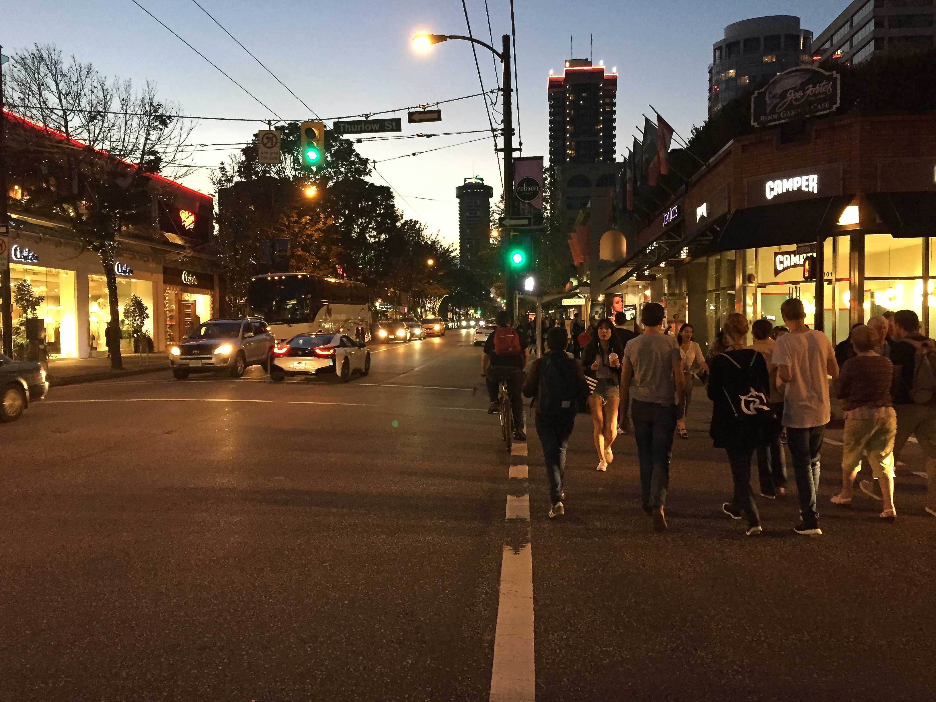 Den salzig-süßen Geschmack noch im Gaumen - und wahrscheinlich ein Stück Seetang zwischen den Zähnen - schlendern wir danach munter plauschend zum nächsten Foodtruck. Dabei hören wir von Jennifer, was so gerade in Vancouver läuft. Dass die Stadt unter anderem bis 2020 die grünste Stadt der Welt sein will und deshalb ihre umweltfreundliche Agenda agressiv vorantreibt. Inzwischen fahren beispielsweise über die Hälfte der Vancouverites mit dem Rad oder mit öffentlichen Verkehrsmitteln zur Arbeit. Oder sie gehen zu Fuß, was dem Stadtbild noch mehr Leben einhaucht.