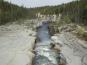 Von Süden geht es dann flussaufwärts über den South Nahanni River und durch den First Canyon Richtung Victoria Falls. Und dann tauchen sie auf - gigantische Wassermassen pressen sich durch die enge Felsschlucht und stürzen in die Tiefe. Ted fliegt eine Schleife und landet 500 Meter oberhalb der Fälle auf dem Fluss. Pünktlich zur Landung fängt es an zu regnen. Egal, wir steigen aus und werden schon von einer Nationalparkangestellten am Dock erwartet. Sie wird uns zu den Fällen führen und uns allerlei Wissenswertes über Flora und Fauna des Nationalparks erzählen. Während der Sommersaison sind immer drei Parkangestellte vor Ort, um Besucher zu führen, die Anlagen vor Ort zu beaufsichtigen und zu pflegen. Zu diesen Anlagen zählt unter anderem ein wunderschön angelegter Campingplatz für die Kanuten, die den Nahanni hinunterfahren und hier umtragen müssen. Es stehen dort tatsächlich einige Zelte und an den dafür vorgesehenen Vorrichtungen liegen vier Kanus. Je nach Einsetzpunkt oberhalb der Fälle dauert so eine Kanutour zwischen sieben und vierzehn Tagen bis zur Mündung in den Liard River - ein absoluter Traum.