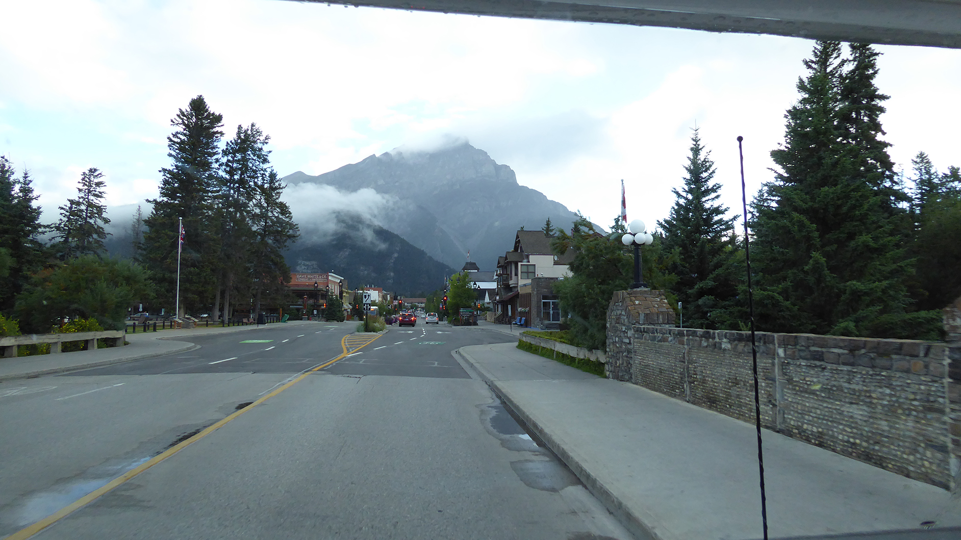 Nach getaner Arbeit fahre ich mit dem Shuttle Bus nach Banff, wo wir zuletzt 2012 mit einer Gruppe waren. Auf dem Weg dorthin erhalte ich einen Anruf von Norbert, dass sie schon vor Ort seien, aber von den Veranstaltern noch nichts zu sehen sei. Leider kann ich ihm nicht helfen-wenig später im Ort bekomme ich eine SMS, dass die Tour ca. 2,5 Stunden dauert und danach noch der Rückweg bewältigt werden muss. Mit einer Rückkehr ist also erst am Nachmittag zu rechnen. Da es immer wieder zu regnen beginnt, esse ich bei McDonald's einen Burger und fahre mit dem Shuttle um 12.45 Uhr wieder zurück zum Campground. Von den Shoppern habe ich nichts gesehen und gehört, hoffe aber, dass auch bei ihnen alles geklappt hat. Gegen 17 Uhr treffen die Banff Ausflügler wieder am Campground ein. Sie haben nicht nur die Stadt gesehen, sondern auch eine Fahrt mit der Seilbahn auf den Hausberg unternommen. Von der Rafting Gruppe erhalte ich eine SMS, dass sie erst gegen 19.00 Uhr zurückkommen werden. Schließlich wird es knapp 19.45 Uhr, weil sie noch getankt haben. Ich hatte bereits für mich und Norbert ein Abendessen zubereitet, so dass wir rasch zum Gemeinschaftsplatz gehen können. Dort brennt bereits das Lagerfeuer und wir gehen zum gemütlichen Teil über. Die Rafter erzählen von ihrem 2 stündigen Abenteuer. Alle sind begeistert, nur wird generell die lange Anfahrt von fast 2 Stunden beklagt. Für den nächsten Tag wird vereinbart, dass wir zuerst den Waterfowl Campground reservieren und dann die Sehenswürdigkeiten rückwärts angefahren werden. Auch wollen alle den Tag allein gestalten.