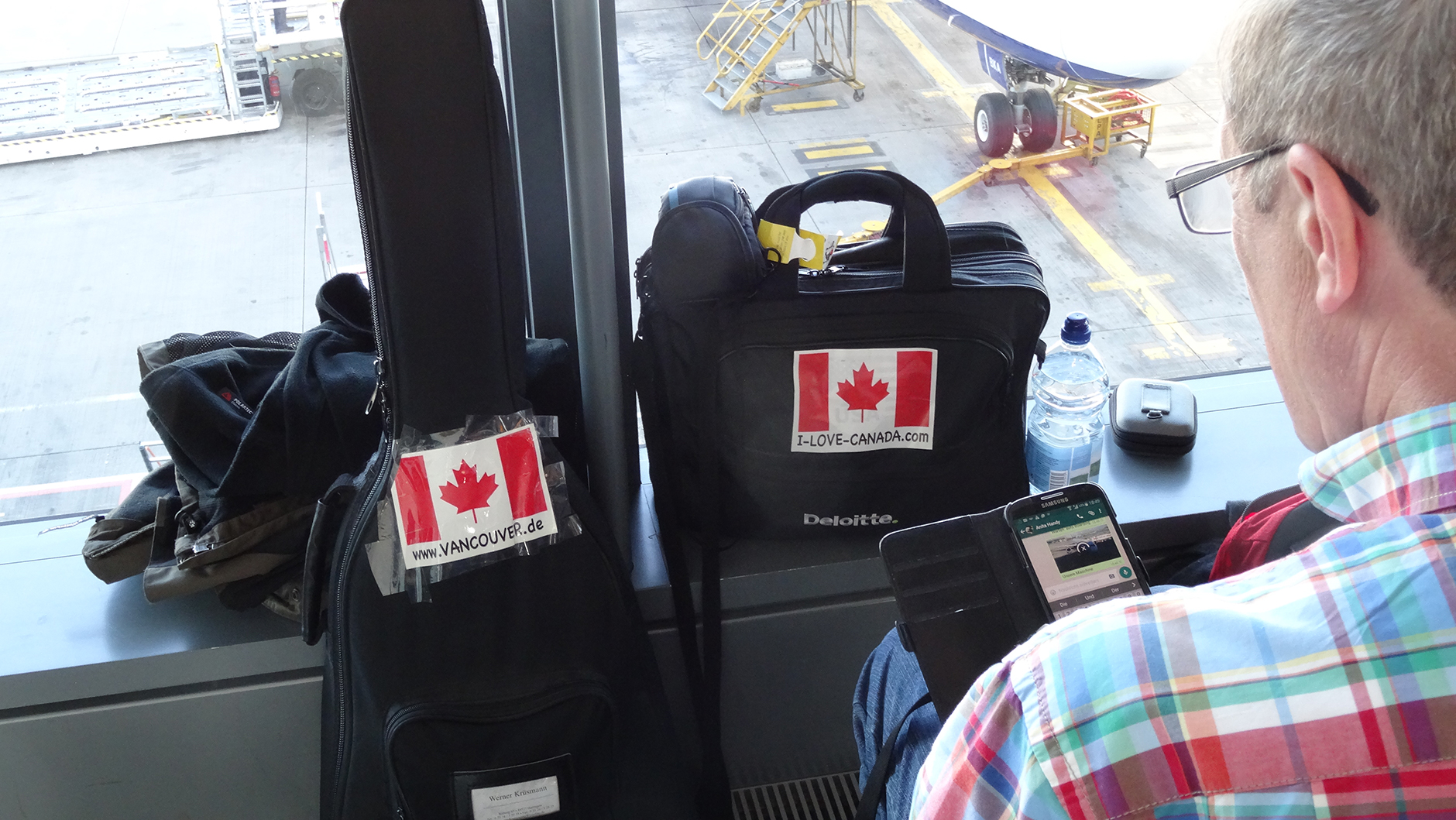 Auf die Minute genau trifft das Personal ein und da wir die Ersten vorn in der Schlange sind, werden wir auch zuerst abgefertigt. Die 1,5 kg Übergewicht meines Koffers wird ohne Zuschlag akzeptiert. Auch die Sicherheitsschleusen können wir zügig passieren, obwohl man bei einer Dose Niveacreme moniert, die ich nicht in den Plastikbeutel gelegt hatte. Danach bleibt noch Zeit genug, uns in einem Bistro zu stärken. Ich entscheide mich für die letzte Currywurst in den nächsten 5 Wochen. Am Gate für unseren Flug nach London treffen immer mehr Fluggäste ein. Wir erfahren, dass dieser Flug völlig ausgebucht ist, erstaunlich und das an einem Sonntag. Unser Airbus hebt dennoch pünktlich ab und wir landen kurz vor 17 Uhr in London. In Düsseldorf haben wir bereits erfahren, dass es von Terminal 5 aus weitergeht, in dem wir auch angekommen sind. Das erspart uns eine Menge Zeit. Leider hat British Airways für den Weiterflug noch kein Gate angegeben und so warten wir ca. 10 Minuten, dann geht es zügig durch die Kontrollen und wir sehen unsere Maschine bereit stehen. Gegen 19.00 Uhr hebt der Dreamliner Richtung Calgary ab. Ein überzeugendes Flugzeug mit Raumgefühl, mehr Beinfreiheit und sehr gutem Druckausgleich. Auch der Entertainment Bildschirm bietet Außergewöhnliches, so dass die Zeit wie im Fluge vergeht. Um 20.30 Uhr landen wir in Calgary und werden sehr zügig durch die Einreiseprozedur geführt. Bei Alamo erwartet uns um 21.15 Uhr ein weißer Mitsubishi Outlander, der ohne Probleme unser Gepäck aufnimmt. Die Fahrt mit Norbert als Driver zum Sandman Hotel Airport gestaltet sich trotz Straßensperrungen dank unseres Navis unproblematisch, sodass wir gegen 22.00 Uhr im Hotel ankommen. Wir beziehen jeder ein großes Doppelzimmer, essen in der Bar unseren ersten Burger und trinken ein großes Bier – willkommen in Kanada. Morgen geht es zu Fraserway, dann zum Einkauf und am Nachmittag holen wir die Gruppe am Flughafen ab.