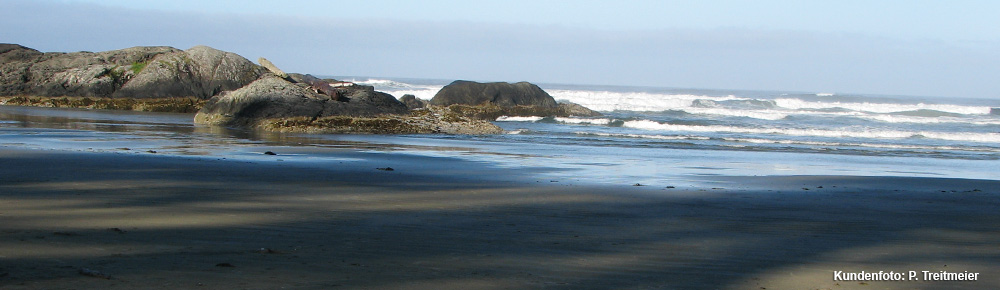 Nach dem Frühstück schlenderten wir noch mal am Long Beach entlang und genossen die Stimmung am Morgen. Über den Kennedy Lake nach Port Alberni verließen wir den Westen von Vancouver Island und quartieren uns am Abend, nach dem Besuch des Cedar Trails in Miracle Beach, ein. Die Fahrt durch die "Mitte" von Vancouver Island ist wild und romantisch. Der Cedar Trail ist in unseren Augen ein "Muss". Riesige Zedern, die zum Teil am unteren Stamm hohl sind. Die Stämme sind manchmal so groß, dass eine ganze Person hineinpasst!
