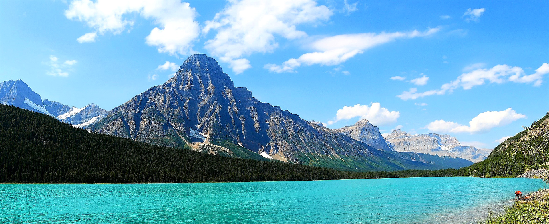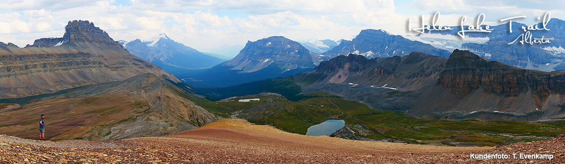 Endlich wieder Rocky Mountains! Das „endlich“ kann ich mir leider nicht verkneifen, denn ich bin definitiv ein Fan der hohen Berge und würde diese dem „Hinterland“ immer vorziehen. Wir hatten den Platz auf dem Lake Louise Trailer Campground für die letzten Tage schon vor Monaten reserviert, da wir auf Nummer sicher gehen und vor dem Abflug ab Calgary in der Nähe campen wollten. Auf dem Weg nach Lake Louise hatten wir uns einen Zwischenstopp und die Wanderung zum Helen Lake vorgenommen. Leider waren wir erst gegen 14 Uhr am Startpunkt, weil wir bereits auf dem spektakulären Stück des David Thompson Highways bis zum Saskatchewan River Crossing ständig Halt machen „mussten“ und bei den Wahnsinnsausblicken aus dem Staunen gar nicht mehr herauskamen. Wir waren geflasht von so viel Schönheit direkt am Straßenrand: Eine Herde Bighorn Sheep vor dem Saskatchewan River, überall Gletscher oder schneebedeckte Berge, hinter jeder Ecke ein neues „Ahhh“ und „Ohhh“...
