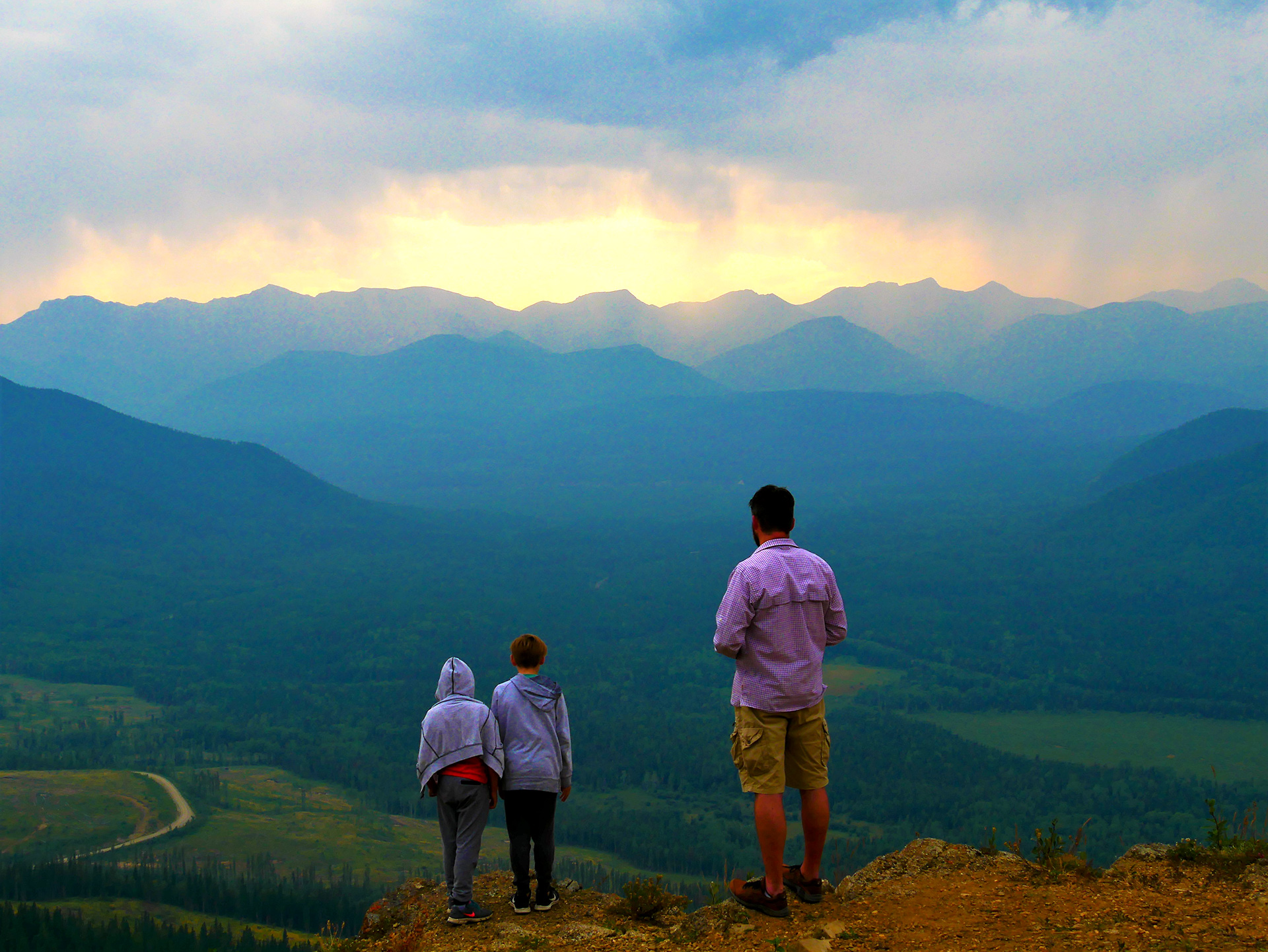 Noch ein Tag, den man aus dem Urlaubsalbum verbannen möchte! Einziger Höhepunkt heute war der Spaziergang zum Athabasca Lookout Viewpoint. Wir fuhren vom Highway 40 ab in die Hinton Nordic Centre Road und parkten am Ende der Straße auf einem Rodelparkplatz. Von hier aus sind es nur ca. 15 Minuten rauf zum Viewpoint. Der Blick von dort ist wirklich atemberaubend! Man hat eine spektakuläre Aussicht auf die Rocky Mountains mit der umgebenden Vorgebirgslandschaft, auf das Solomon Valley, auf den Berg Roche Miette, auf den Brule Lake und den Athabasca River. Trotz der nur mäßigen Sicht (neben dem ohnehin vorhandenen Smoke begann es nun auch noch zu gewittern und stürmen) war dieser kurze Spaziergang auf jeden Fall lohnenswert.
