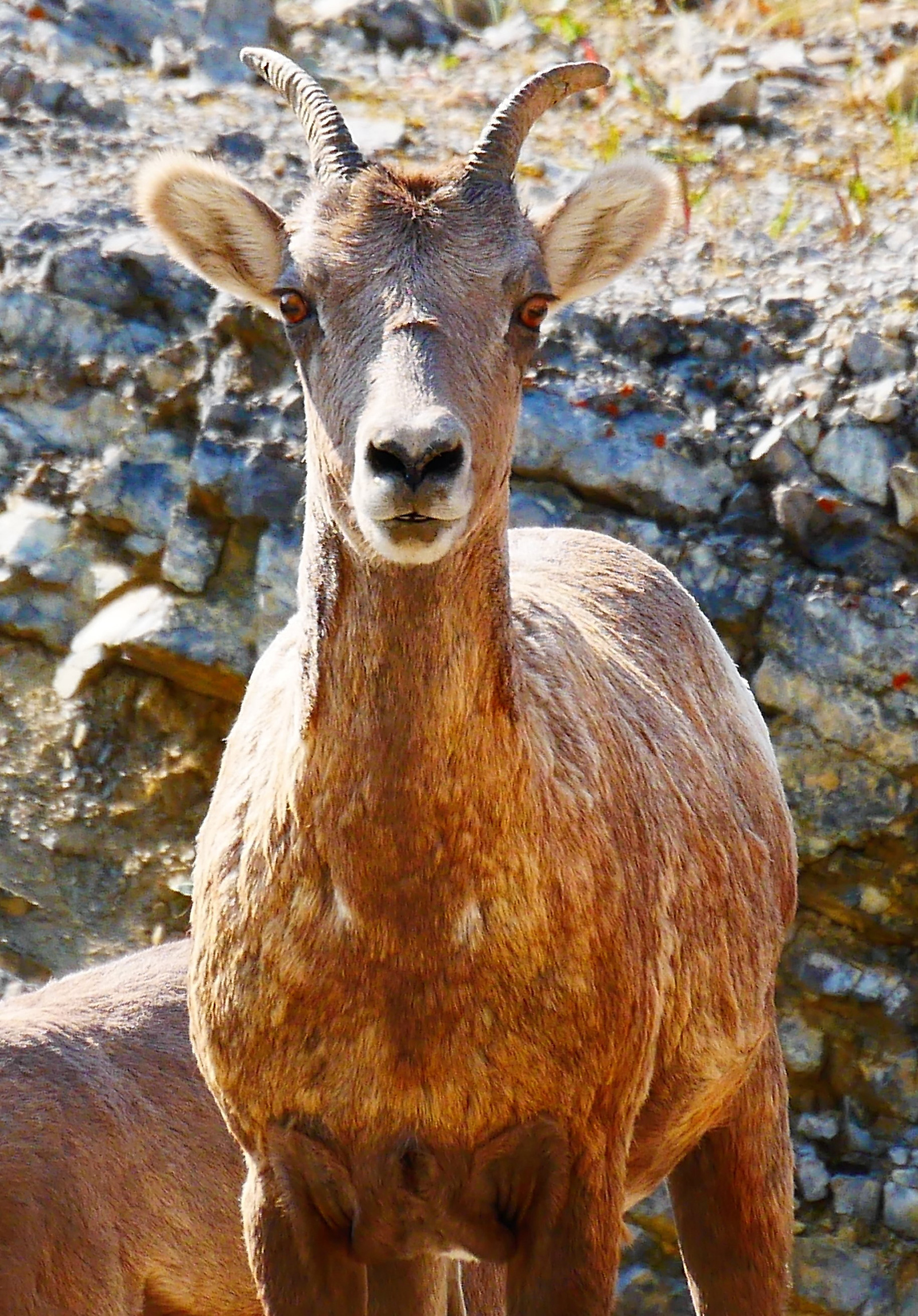 Heute machten wir uns gegen 10 Uhr auf den Weg. Neues Ziel war, da wir in den Nationalparks ja keinen Fuß auf den Boden bringen konnten, der Whitehorse Creek Provincial Park. Wir wurden mehrfach gewarnt, dass wir bei Wanderungen mit den Jungs sehr vorsichtig sein sollten, weil man dort überall und ständig Wildlife, vor allem Bären, begegnen würde. Was für eine verlockende Warnung! Gegen Mittag fuhren wir durch die Coal Branch ins Städtchen Cadomin (Akronym für “Canadian Dominion Mining”), eine Siedlung, die ihren Höhepunkt in den 1930er Jahren und damals ca. 1.800 Einwohner hatte. Jetzt wirkte sie eher verlassen. Der Weg nach Cadomin durch das Kohlefördergebiet bot eine wirklich beeindruckende, etwas unheimliche Szenerie. Direkt am Wegrand trafen wir auf einen Tierfilmer, der auf eine Herde von Bighorn Sheep wartete, die hier oft das Salz von der Straße lecken. Ein paar Kilometer weiter konnten wir tatsächlich selbst ein riesiges Dickhornschaf beobachten.
