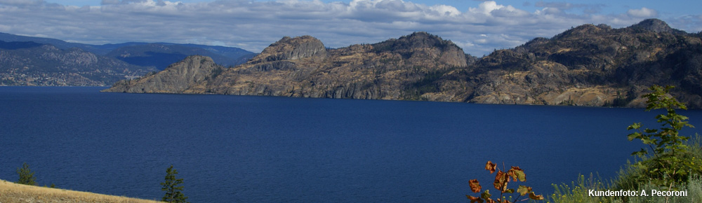 Uhrzeit 5:15 aufgeweckt von Hazelnut-Kaffeeduft (ich liebe diese aromatisierten Bohnen!), Rundgang über den Campground mit lustigen Squirrels. Kalte Nacht mit wenig Schlaf (5°). Aufbruch in Richtung Osoyoos um 8:00 Uhr. Bis Princeton Hochgebirge und Hochnebel, später hellblauer Himmel, immer entlang am River Similkameen, runter ins Tal pünktlich zum Rodeo-Umzug in Hadley. First Nations Reservat - No National Park - Indian Reserv. Es wird wärmer, 18-20°. Obstplantagen und Verkaufsstände, jedoch wegen Feiertag viele geschlossen. Von Osoyoos auf 97 North entlang der Weinstrasse - Vineyard auf Vineyard, viel Feiertagsverkehr, Motorradfahrer, Camper, kaum Trucks. Stopp in Oliver im Pub: "Chef in", gute Musik und gute Burger. Überwältigende Sicht auf Okanagan Lake. Kurz hinter dem Okanangan Provincial Park Campground finden wir rechts am See wunderschön gelegen die Greata Vinery. Weinverkostung mit sympathischer Beratung und Tipps für morgen. Der Tag war schon lang, darum entschließen wir uns zum Weineinkauf und Übernachtung im Okanagan Provincial Park North. Ankunft CG 15:30 Uhr und 25°, unser Platz # 51 mit Sicht auf See und wenig Vekerhslärm vom Highway.