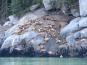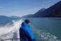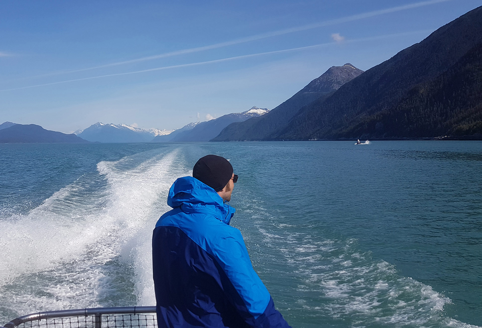 Bei traumhaftem Wetter machen wir uns tags darauf auf den Weg zum Hafen von Haines. Auf den Holzpfählen sitzen Weißkopfseeadler und zwischen kleinen Yachten und Fischerbooten schwimmen Otter umher. Süß! Dann kommt der Katamaran von Fjordland an, der uns heute nach Juneau bringen soll. Das moderne Boot hat einen schönen Innenbereich mit großen Fenstern und ein großes Sonnendeck im Heck. Hier verbringe ich fast die kompletten drei Stunden der Überfahrt draußen. Nicht nur wegen des schönen Wetters, sondern auch weil mich die offene Rundum-Sicht auf die Inside Passage, die Berge und die Gletscher einfach nicht loslässt. Das Boot wird langsamer, als wir an einem Felsen voller Seelöwen vorbeifahren. Ganz in der Nähe wird der Motor abgestellt. So kann man die Tiere nicht nur in Ruhe beobachten, sondern auch ihre Rufe hören. Der Fjordland Express ist eben keine reine Fähre, sondern auch eine Wildlife-Viewing und Sightseeing Tour.