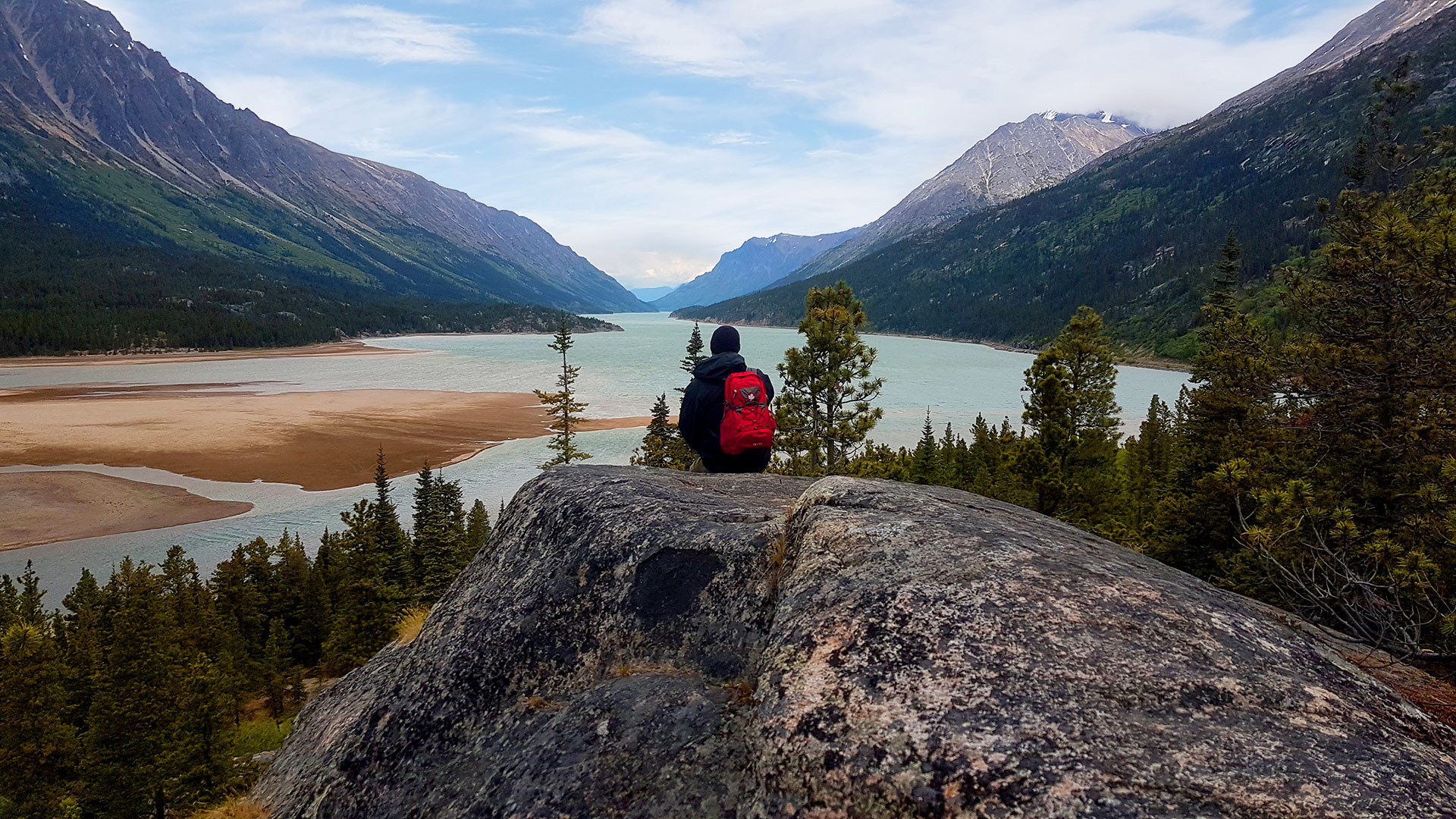 Der erste Morgen in Kanada muss natürlich mit einem echten kanadischen Frühstück beginnen. Eier, Maple Bacon, Hash Browns, Bagels – daran könnte ich mich gewöhnen. Dann fahren wir mit unseren zwei Fullsize SUVs auf den Alaska Highway in Richtung Teslin. Etwa 50 Kilometer von Whitehorse machen wir Halt am Inn on the Lake. Die gemütliche kleine Lodge liegt direkt am Ufer des Marsh Lake. Ein perfekter Ausgangspunkt zum Wandern, Kanufahren oder Angeln. Im Gemeinschaftsraum der Lodge gibt es täglich Frühstück und Dinner vor einem einmaligen Seeblick. Hier könnte man sich zum Beispiel noch ein paar Tage verwöhnen lassen, nachdem man sein Wohnmobil in Whitehorse abgegeben hat. Besonders im Herbst eine coole Idee.