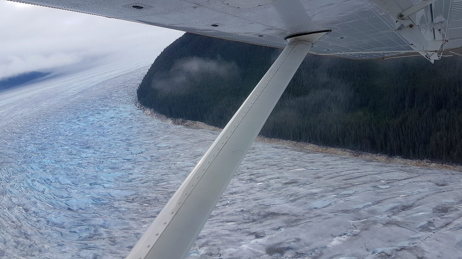 Wieder unten am Hafen treffen wir uns an der kleinen Holzhütte von Wings Airways. Hier startet unsere Fly'n'Dine Tour zur Taku Lodge. Ich steige in eines der drei DeHavilland Otter Wasserflugzeuge, dann heben wir ab. Die Aussicht ist der Hammer! Erst Juneau von oben, dann der Fjord, dann die riesigen Gletscherflächen des Juneau Icefield. Insgesamt fünf Gletscher liegen auf der Flugroute. Nach einem unvergesslichen Flug landen wir im Taku Inlet direkt vor dem Hole-In-The-Wall-Glacier. Hier erwartet uns eine gemütliche Lodge, direkt daneben liegen schon die Lachsfilets auf einem großen Barbecue Grill. Es bleibt etwas Zeit, die Umgebung zu erkunden, bis ein lauter Gong alle Gäste zum Essen in die Lodge ruft. Neben dem frischen Coho-Lachsfilet gibt es ein Buffet mit leckeren Beilagen. In urig-gemütlicher Atmosphäre genieße ich das Dinner am Kaminfeuer und schaue regelmäßig aus dem Fenster zum Grillplatz. Nicht selten sollen hier einige Schwarzbären herumschleichen, die gern den fischigen Grillrost ablecken. Heute scheinen sie allerdings keinen Appetit zu haben. Nach einer kurzen Wanderung durch den Regenwald fliegen wir zurück, wieder mit herrlichen Ausblicken auf den mächtigen Taku Gletscher. Später sehe ich aus dem Flugzeug eine Fontäne im Wasser des Fjordes. Auch der kurz darauf auftauchende Wal ist aus dieser Flughöhe deutlich zu erkennen. Wow!