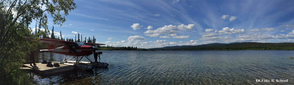 Tja, das war praktisch eine "Pausennacht" in Whitehorse. Hotelzimmer, Restaurant, Pub. Ach, ich bin echt gern in Whitehorse. Ich finde dieser Ort hat etwas, das so in einem kanadischen Ort mit Flughafen kaum noch zu finden ist. Es ist kultig. Dörflich. Man kennt sich und hilft sich. Einfach nett. Naja, es war ein schöner Abend, aber jetzt soll es noch einmal in die Wildnis gehen. Am frühen Morgen treffen Andy und ich Bernhard Stehelin. Der Kanadier mit schweizer Familienwurzeln ist Buschpilot und betreibt zudem einige Outpost-Camps in der Yukon-Wildnis. Wollte ich mir schon immer anschauen - sowas ist ja genau mein Ding! Bernhard bringt uns zurück nach Braeburn (heute keinen Riesen-Cinamon-Bun!!), wo sein Wasserflugzeug vertäut ist. Ganz ehrlich, hier am Steg sieht es schon idyllisch aus. Mit dem Flieger im Vordergrund und dem See und den Uferwäldern als Szenerie. Das Wetter ist super - wird wohl heiß werden. Ein bisschen Sprit braucht der Flieger noch. Bernhard transportiert seine private kleine Tankstelle auf der Ladefläche seine Trucks - praktisch. Dann geht's los. Vorwarnung: Jetzt kommen mehrere Postings hintereinander. Geht nicht anders - ich muss Euch die Bilder UND die Videos zeigen. Alles authentisch, alles unbearbeitet natürlich...