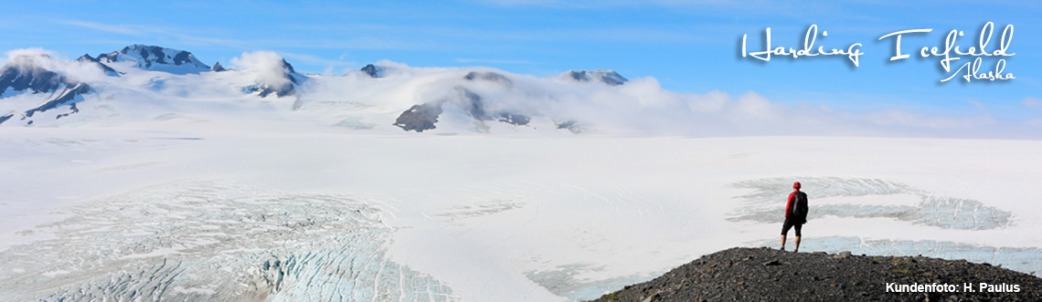 Heute stand mal wieder "Beine vertreten" auf der Agenda. Wir gingen den wunderschönen Harting Icefield Trail. Es war ein superschöner abwechslungsreicher Trail am Exit Glacier vorbei. Zu Anfang durch Wald, dann über eine Wiese, zum Schluss über Schieferfelder mit teilweise Schneefeldern bis man schließlich vor dem großen Harding Icefield stand. Uns blieb erst einmal der Mund offen stehen. So groß hatten wir uns das Eisfeld nicht vorgestellt. Einfach atemberaubend. Da wir doch schneller als gedacht mit der Wanderung fertig waren, nahmen wir noch den Exit Glacier Trail mit. Es war heute mal wieder ein gelungener Tag!