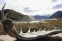 Zum Frühstücken sind wir heute extra um 6 Uhr vom Campground raus zur Straße am Fluss gefahren, um die Bären zu beobachten. Aber diese waren wohl gerade schon fertig mit ihrer Mahlzeit, denn der letzte Bär überquerte noch vor unserem Camper die Straße wieder hinauf in den Wald. Schade! Das Ausmaß des Frühstücks war aber nicht zu übersehen. Überall waren die Lachsreste verteilt und es roch nach Fisch. Nach unserem Frühstück ging's dann auf zu unserer Endstation in Whitehorse auf den Wolfs Creek Campground, etwas außerhalb vom State Park. Wir wollten für die letzten Nächte noch einen schönen Platz und keinen RV-Park. Die Truck-Camper waren auch durch den Regen zwischenzeitlich wieder einigermaßen sauber, sodass wir uns die "Waschanlage" sparen konnten. Auf den letzten 180 km seit Haines begegneten uns nur 4 Autos. Einfach schön... Man darf gar nicht daran denken, dass wir bald wieder in Deutschland sind. Bevor wir unseren Platz bezogen, besuchten wir in Whitehorse noch den Miles Canyon, sowie die Fischleiter. Den Tag beendeten wir dann mit einem kurzen Trail von unserem Campground aus (Wolfs Creek Trail, 3 km), der übrigens sehr zu empfehlen ist.