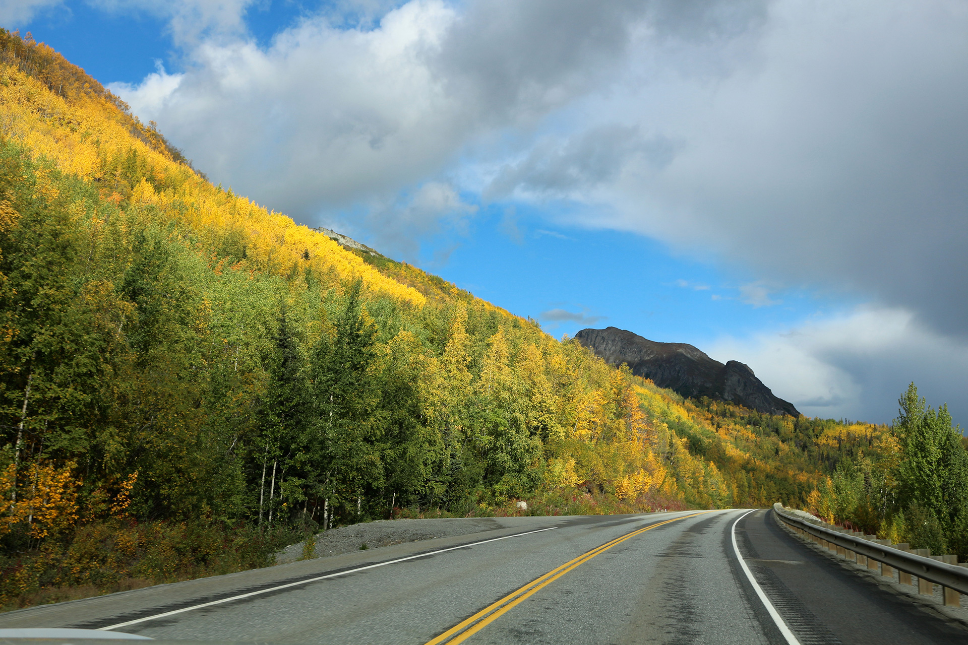 Da der Worthington Glacier heute morgen so schön in der Morgensonne lag, kamen wir um einen erneuten Fotostopp dort nicht vorbei. Zurück auf dem Richardson Highway ging es dann über Glennallen nach Tok und dann den Alaska Highway runter an schneebedeckten Bergen und herbstlichen Bäumen vorbei. Dann südlich von Northway Junction auf den Lakewiev Campground.