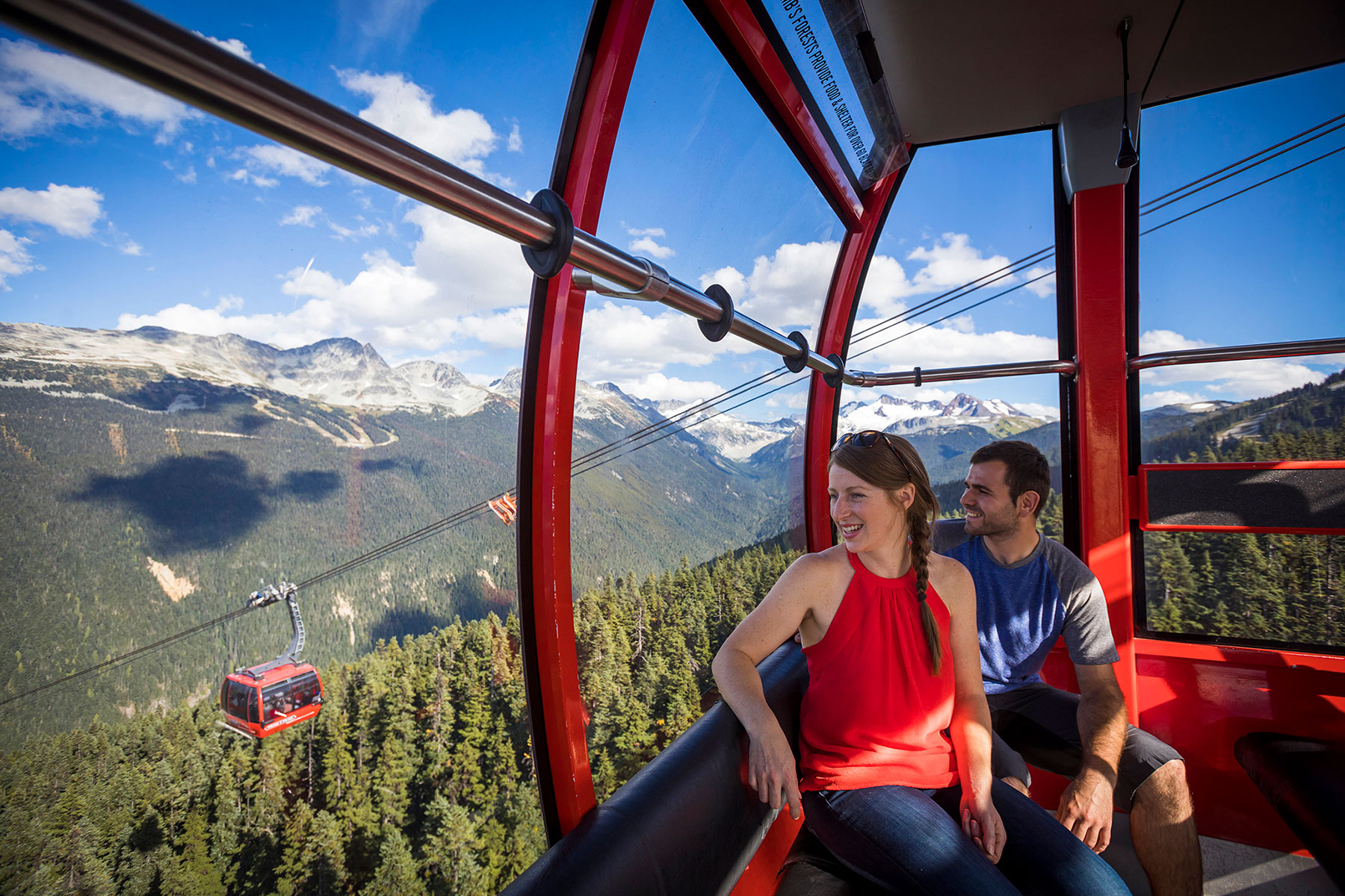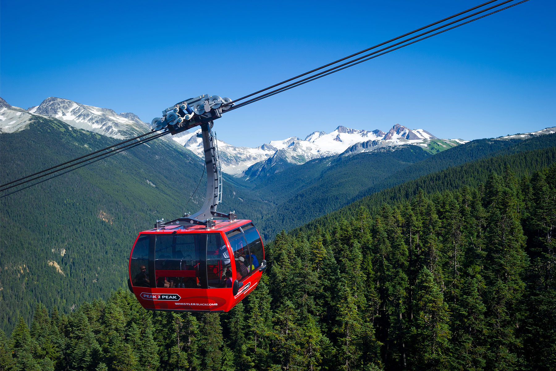 Dein Abenteuer beginnt in Whistler. Du erreichst die Peak 2 Peak Gondeln über das Whistler Village oder die Blackcomb Gondola. Dann heißt es einsteigen und los geht die Fahrt. Du schwebst für mehr als vier Kilometer bis zu 436 Meter über dem Grund des Whistler Valley, durch das sich türkisblaue Flüsse ziehen. Für den besonderen Kick haben einige der Gondeln einen Glasboden. Der Ausblick auf das Tal ist atemberaubend. Der Blick schweift weiter: weiß gezuckerte Berge, uralte Gletscher, traumhafte Küstengebiete und temperierter Regenwald.