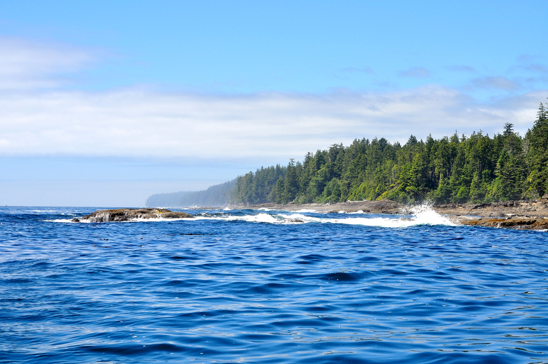 Wale vor der wilden Westküste Vancouver Islands beobachten. Startpunkt ist Port Renfrew, eine kleine und touristisch (noch) relativ unerschlossene Gemeinde. Die Lage am Übergang des West Coast und des Juan de Fuca Trails, inmitten von uralten Wäldern, machen Port Renfrew zum tollen Ausgangspunkt für Tierbeobachtungstouren – besonders zu Wasser.