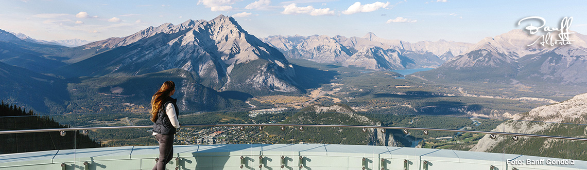Heute geht es hoch hinaus. Mit der Banff Gondola fährst du auf den über 2000 Meter hohen Sulphur Mountain. Mit jedem Höhenmeter wird die Talstation etwas außerhalb des Ortes Banff kleiner und du näherst sich der Bergspitze. Von der Bergstation führen Holzstege entlang des Bergkamms und laden zu einem gemütlichen Spaziergang ein. Verschiedene Aussichtsplattformen ermöglichen den Blick auf das Städtchen Banff und die umliegende Region. Rund um dich herum erschließt sich das Bergpanorama der Rocky Mountains.