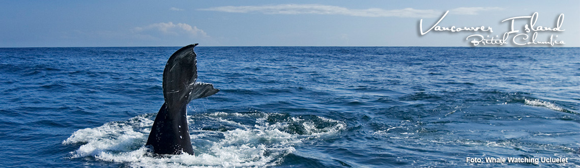 Walbeobachtungstourab/bis Ucluelet, B.C.Beste Chancen für die Beobachtung von Grauwalen. Von April bis November lassen sich die Meeresgiganten vor der Westküste Vancouver Islands sichten. In den Sommermonaten zeigen sich häufig Buckelwale in den Gewässern. Auch Orcas halten sich regelmäßig in der Region auf. Erlebe die beeindruckende Tierwelt entweder von Bord einer Motoryacht aus oder komm den Walen in einem offenen Zodiac einmal ganz nah!