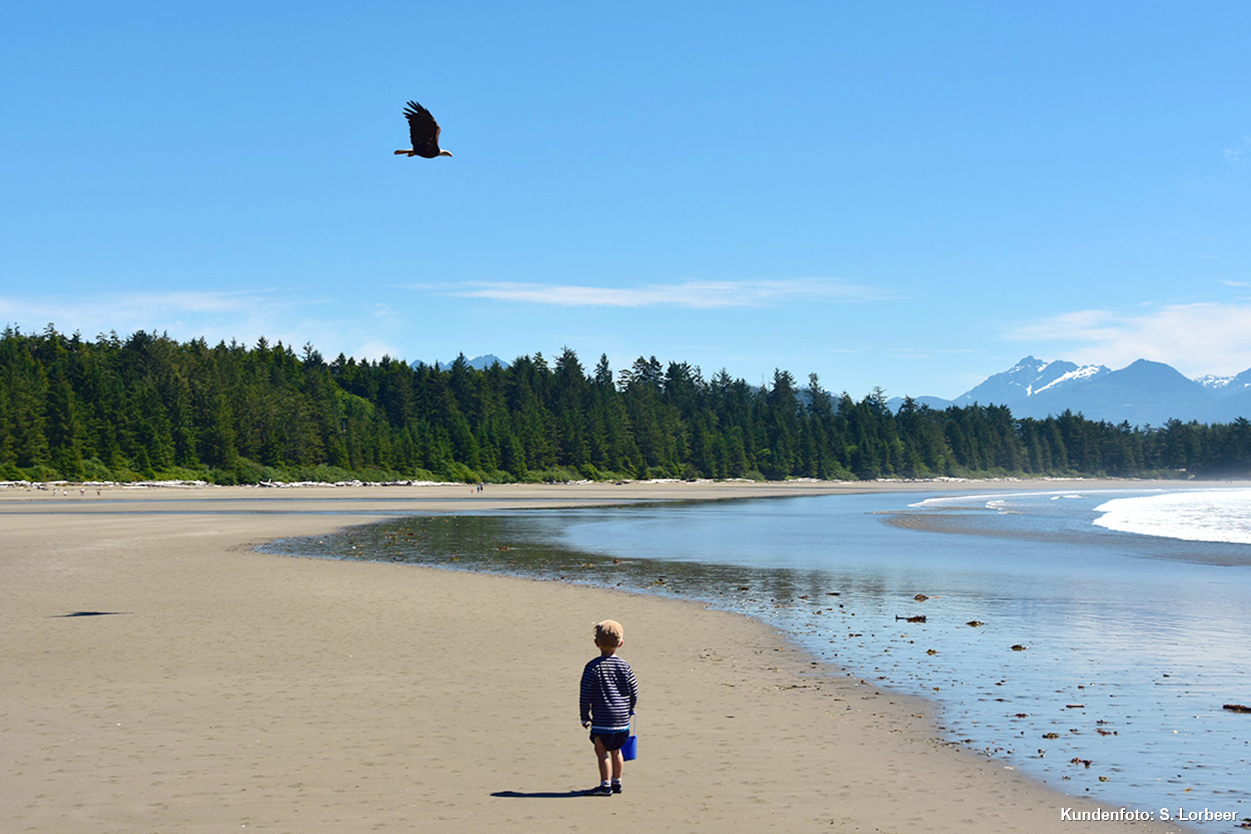 Viel Zeit zur Erkundung des Pacific Rim National Parks. Entdecke auf Wander- und Lehrpfaden den einzigartigen Regenwald und spaziere entlang der kilometerlangen Sandstrände. Doch Vorsicht: Der Pazifik ist hier nicht gerade warm! Und schließlich noch die Tiere: Von Tofino aus kannst du an Wal- oder Schwarzbärenbeobachtungstouren teilnehmen!