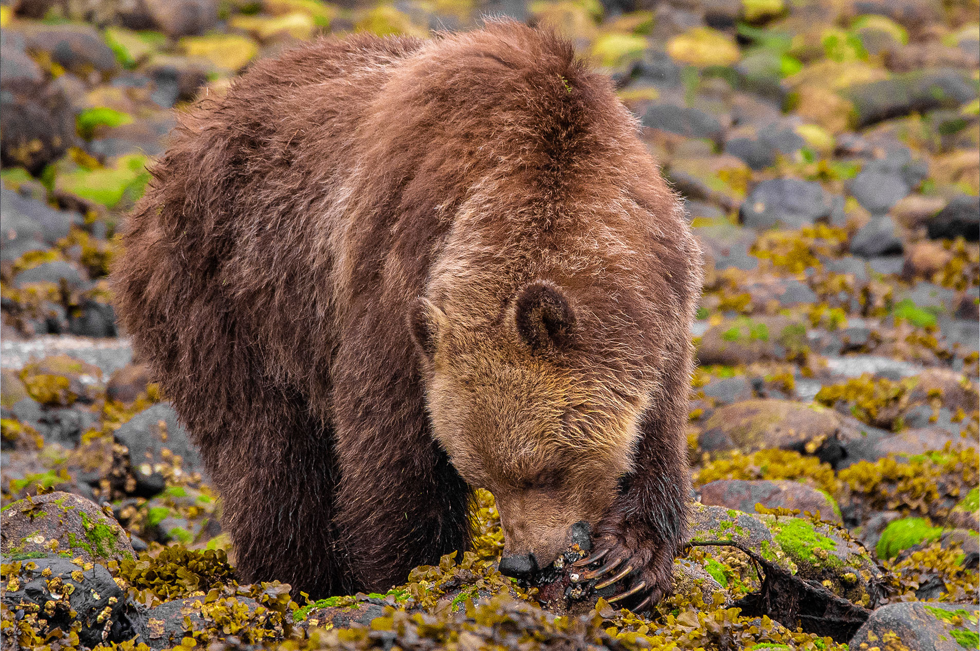 Heute steht deine Schwarzbärenbeobachtungstour mit Remote Passages auf dem Programm. Mit einem Zodiac-Schlauchboot fährst du in die ruhigen Fjorde, an deren Ufern die Bären nach Steinkrebsen, Seepocken und Muscheln suchen. Halte deine Kamera bereit, um die beeindruckenden Begegnungen mit diesen einzigartigen Tieren in ihrem natürlichen Lebensraum festzuhalten. Natürlich sind häufig auch andere Wildtiere wie Weißkopfseeadler, Delfine und Seehunde zu entdecken.